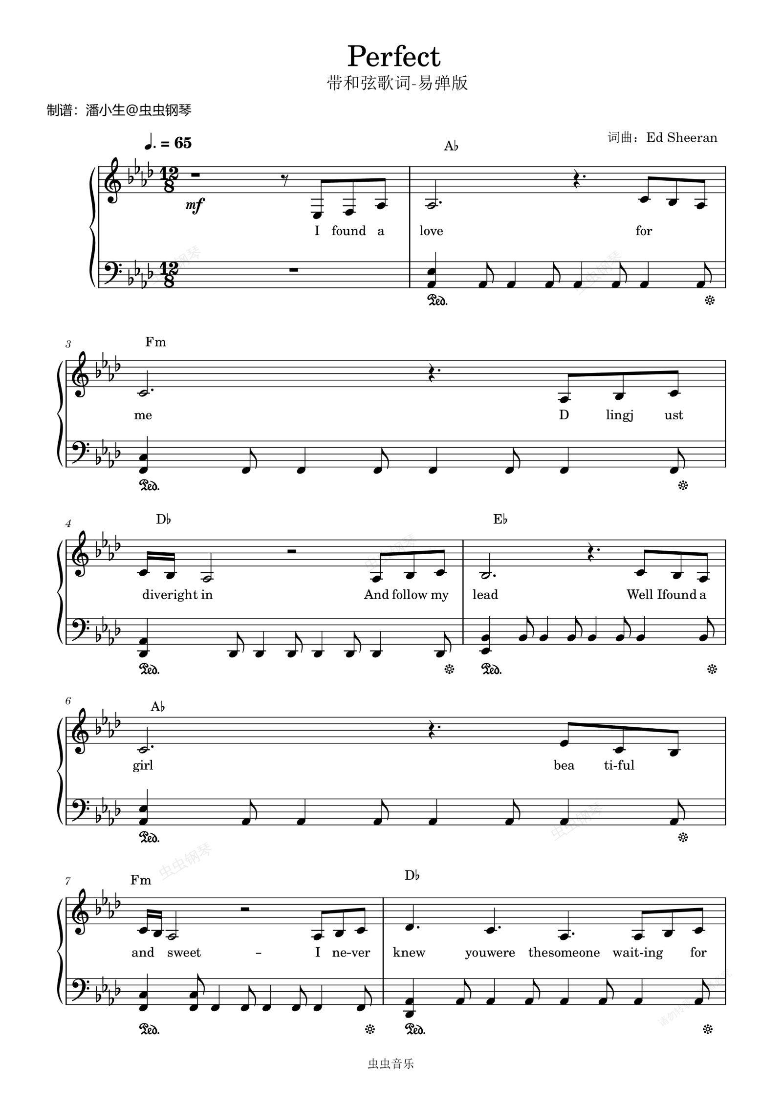 钢琴谱:Perfect,原调易弹版带和弦歌词,Ed Sheeran,黄老板,完美无暇