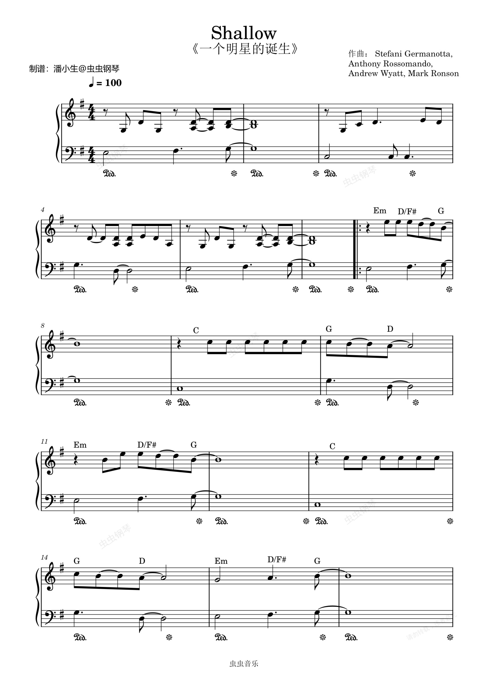 钢琴谱:Shallow,《一个明星的诞生》原调独奏版,Lady Gaga,带和弦标记