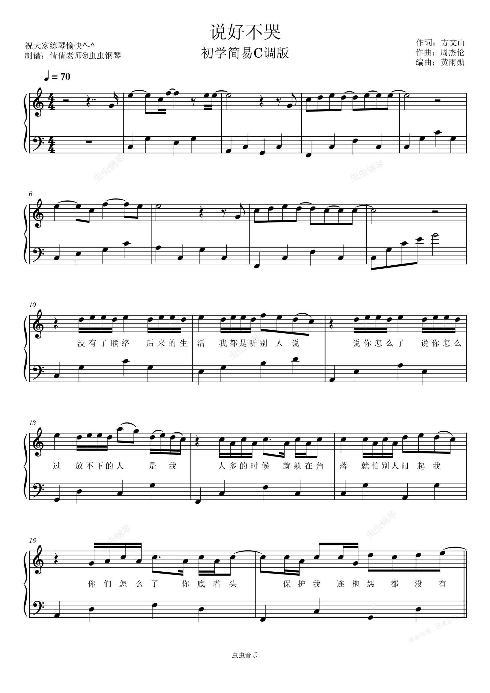 钢琴谱:说好不哭-周杰伦-C调初学简易版