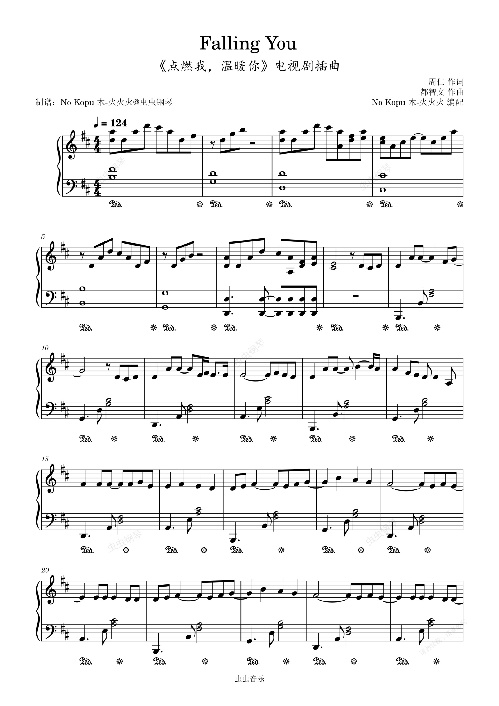 钢琴谱:精编独奏D调《Falling You》《点燃我,温暖你》插曲