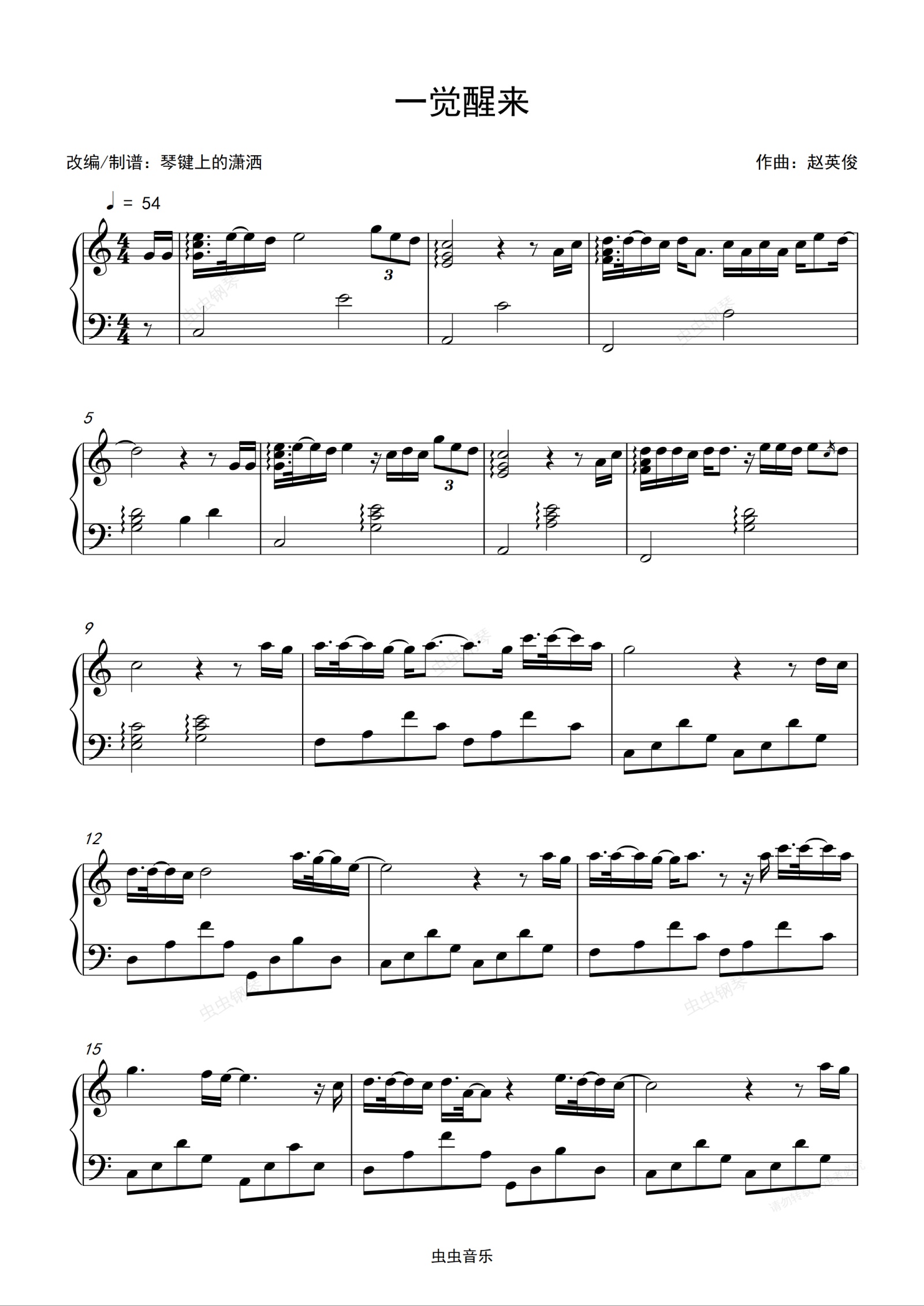 钢琴谱:《一觉醒来》-赵英俊-C调独奏