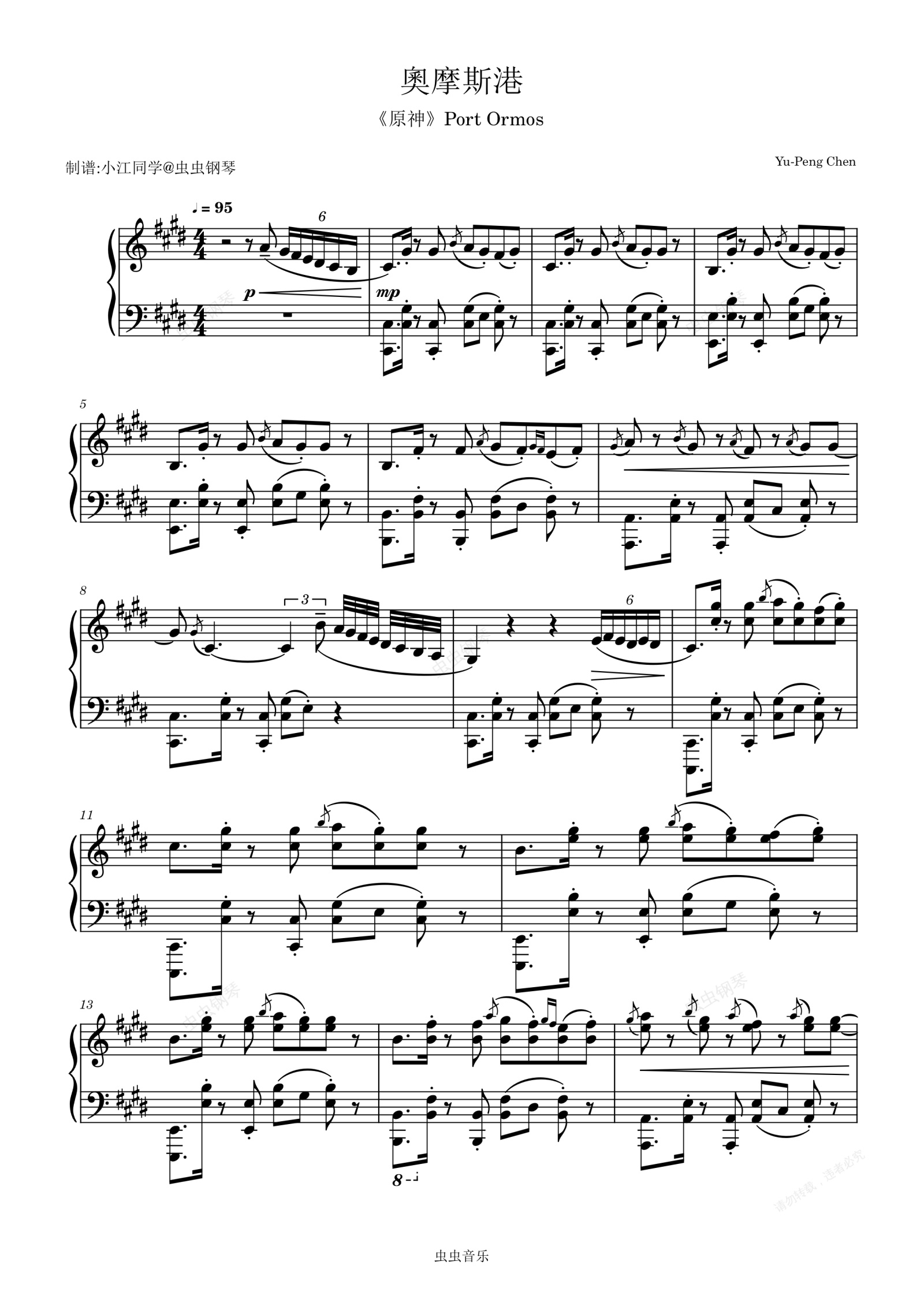 钢琴谱:奧摩斯港《原神》Port Ormos