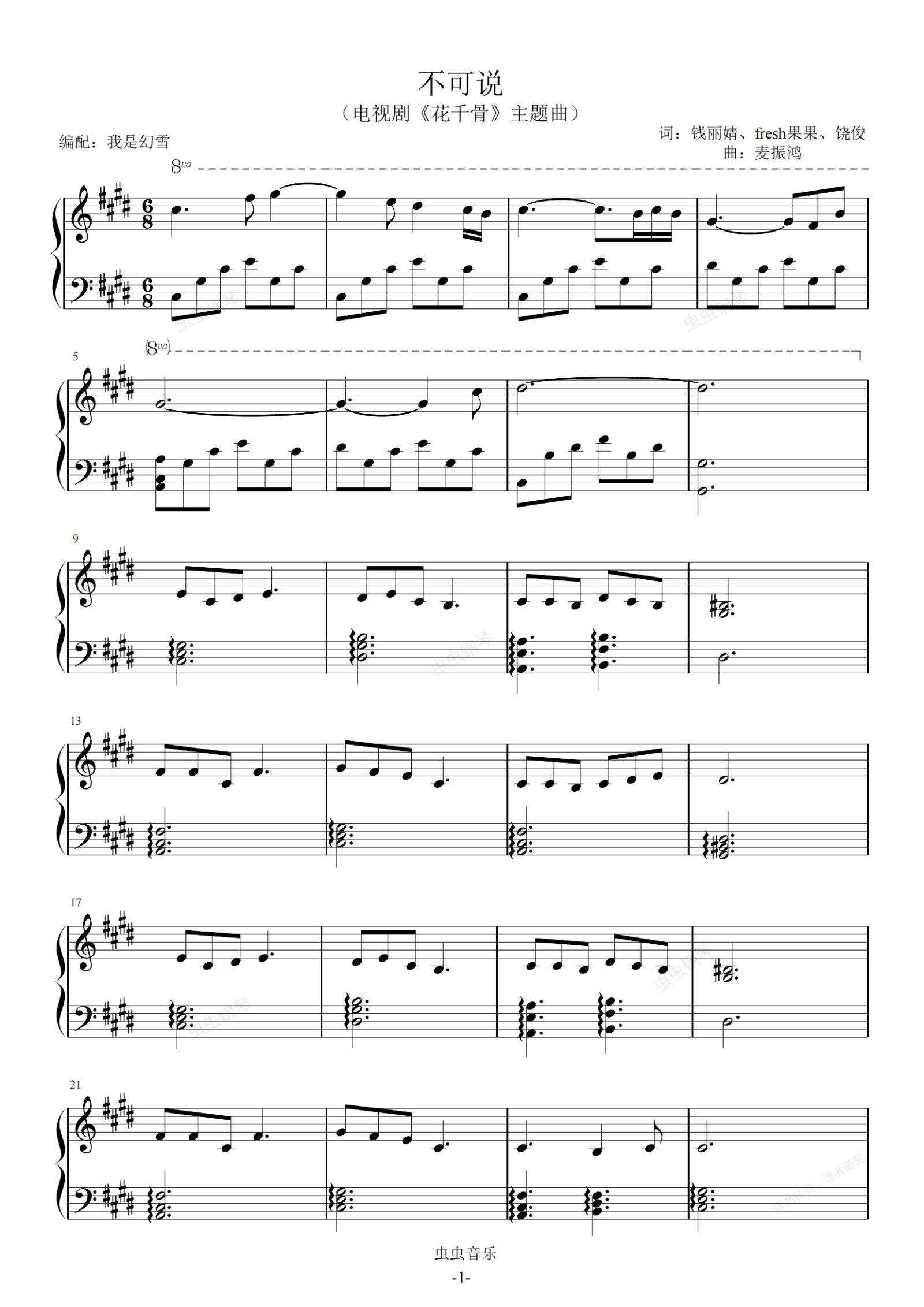 钢琴谱:不可说(原调)-《花千骨》主题曲