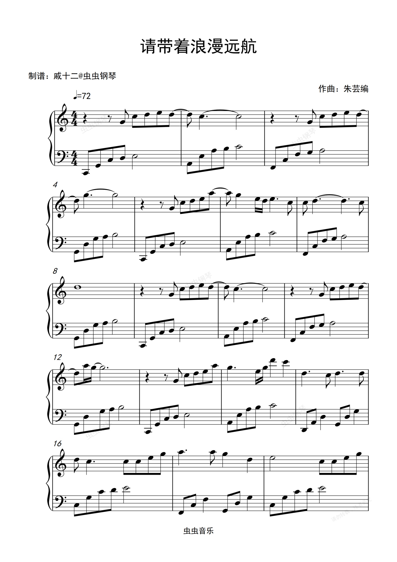 钢琴谱:请带着浪漫远航 (《冲出地球》主题曲-C调简单版