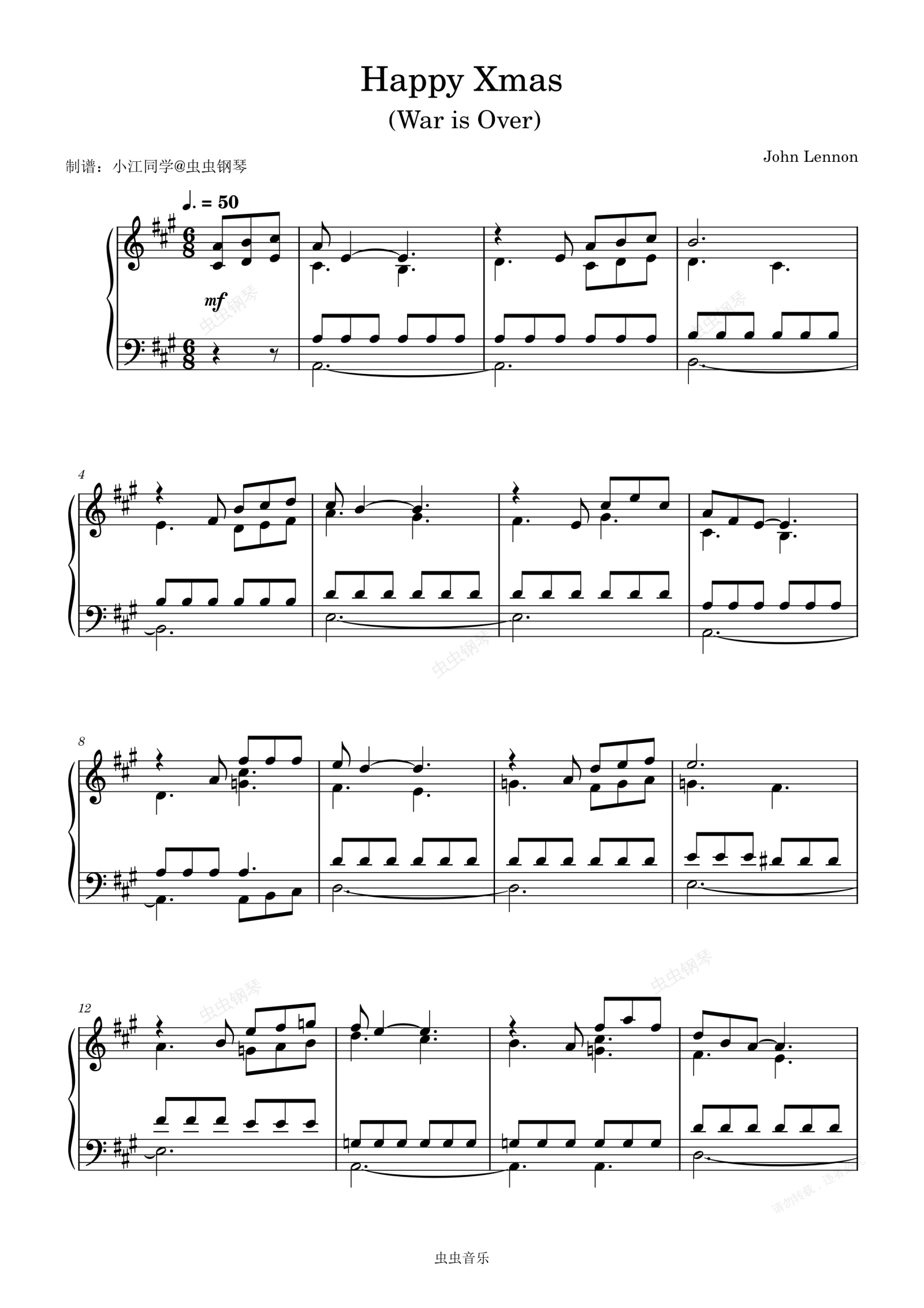 钢琴谱:Happy Xmas - John Lennon (War is Over)