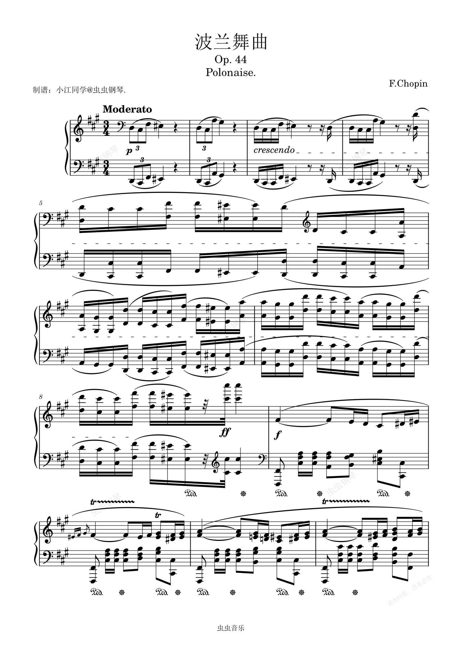 钢琴谱:波兰舞曲 Op. 44 Polonaise.