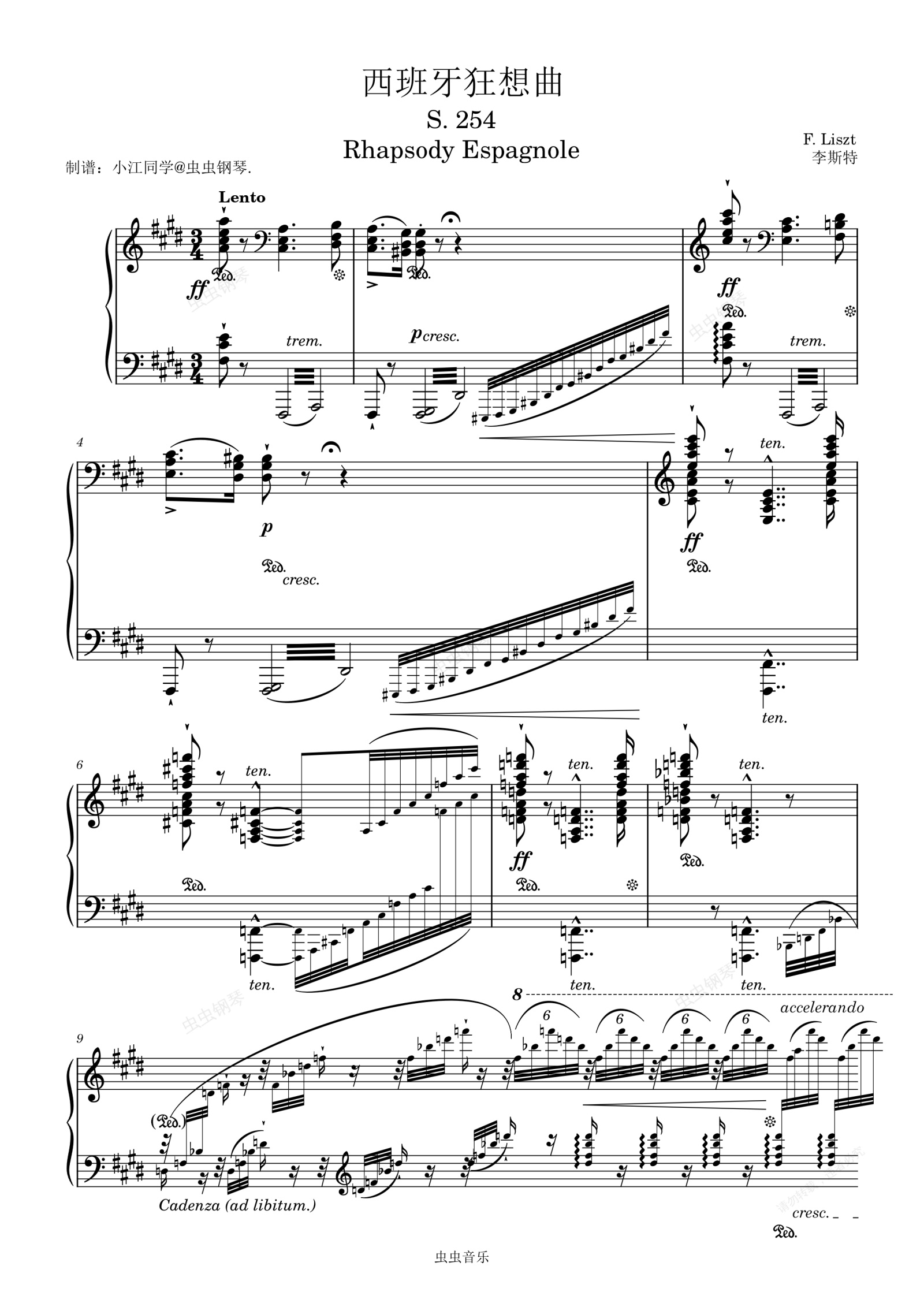 钢琴谱:西班牙狂想曲 S. 254 Rhapsody Espagnole
