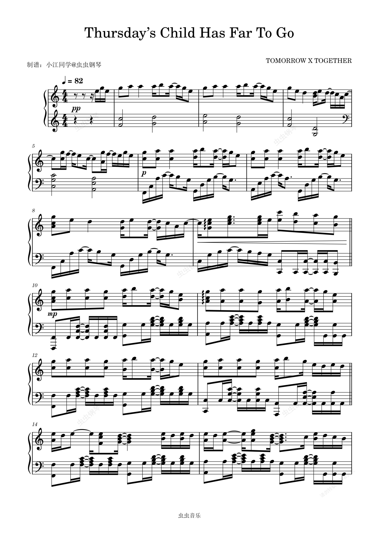 钢琴谱:C大调 Thursday’s Child Has Far To Go - TXT