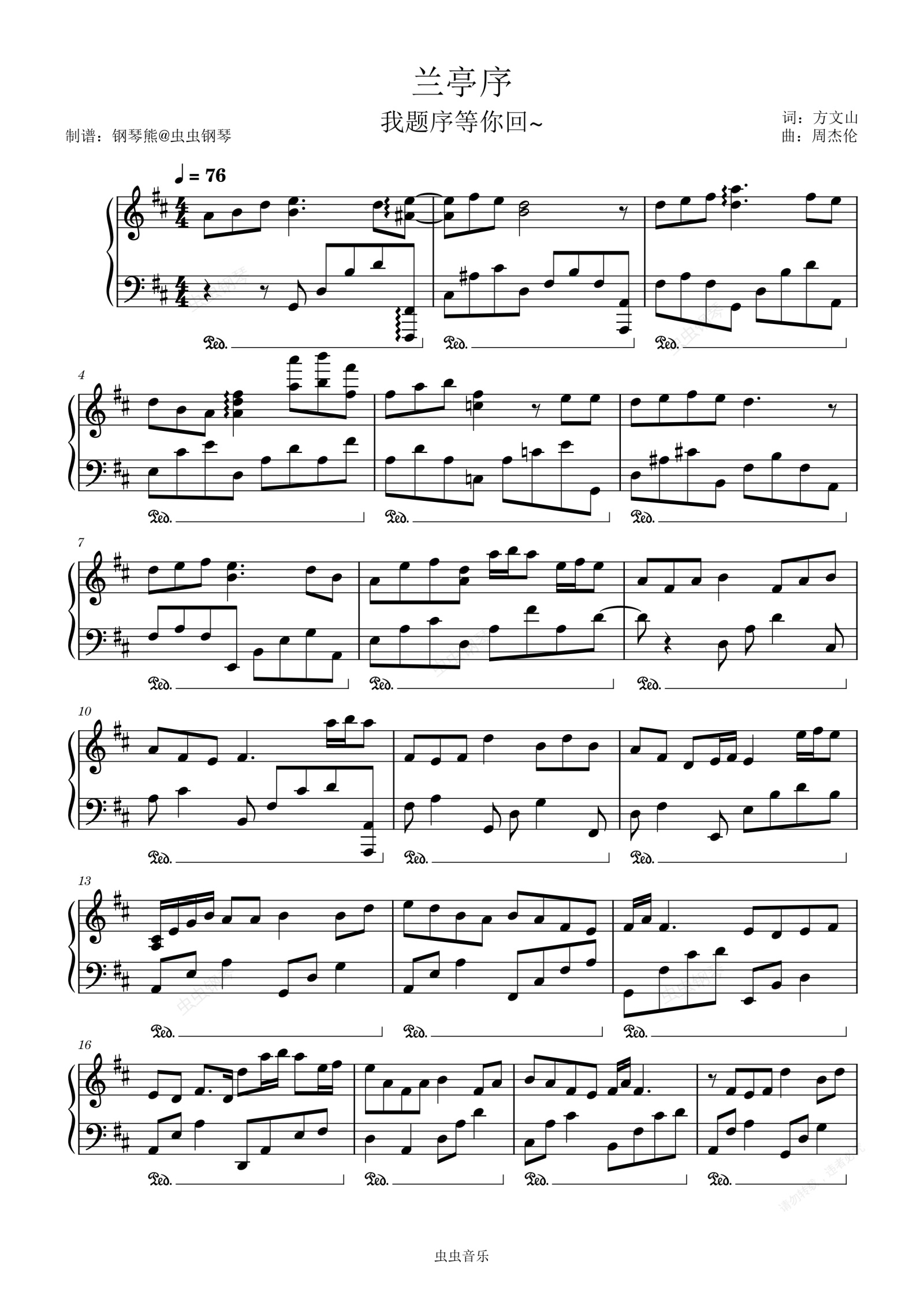 钢琴谱:《兰亭序》钢琴极致还原版~
