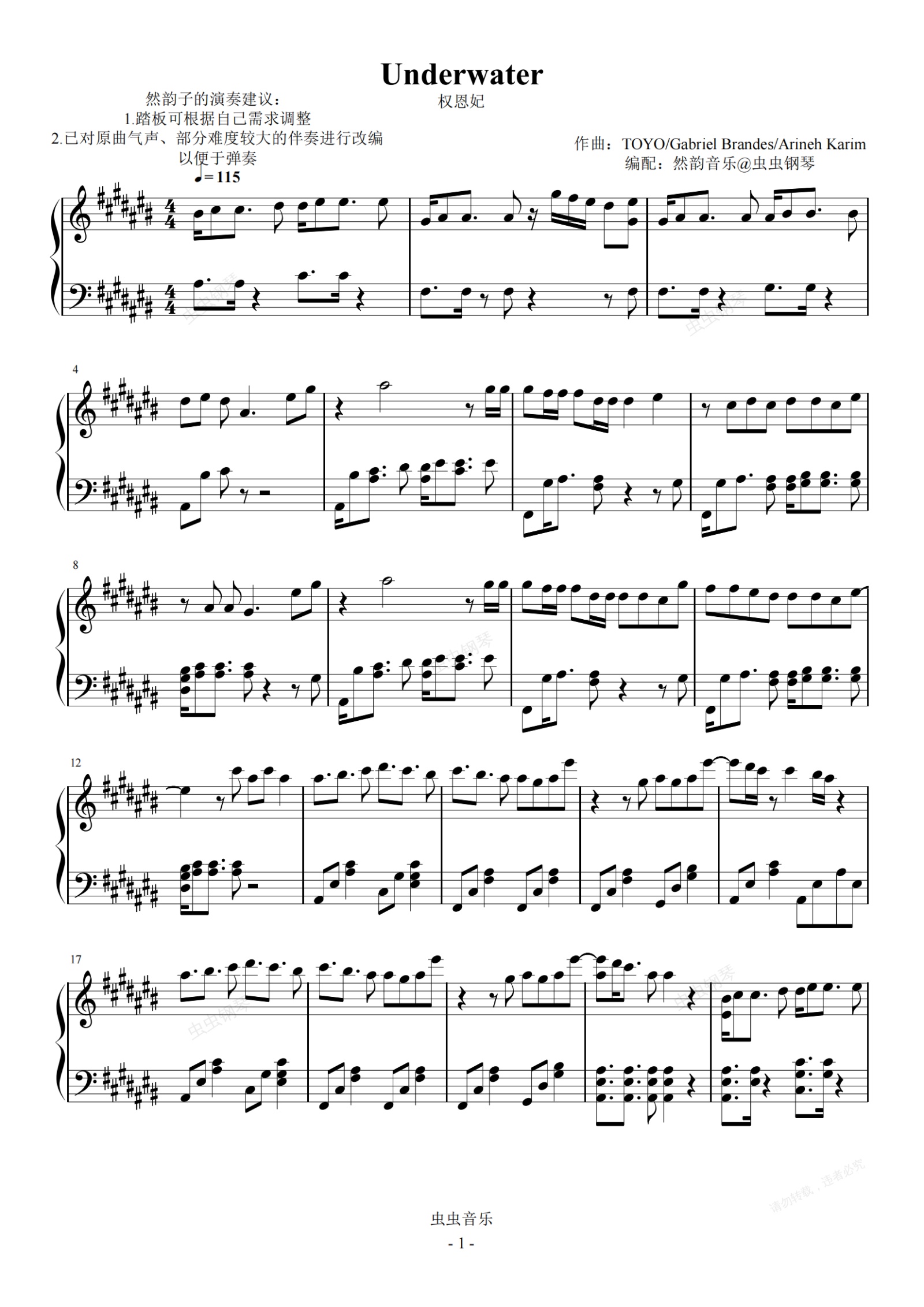 钢琴谱:【原调】Underwater-권은비 (权恩妃) 钢琴极限还原