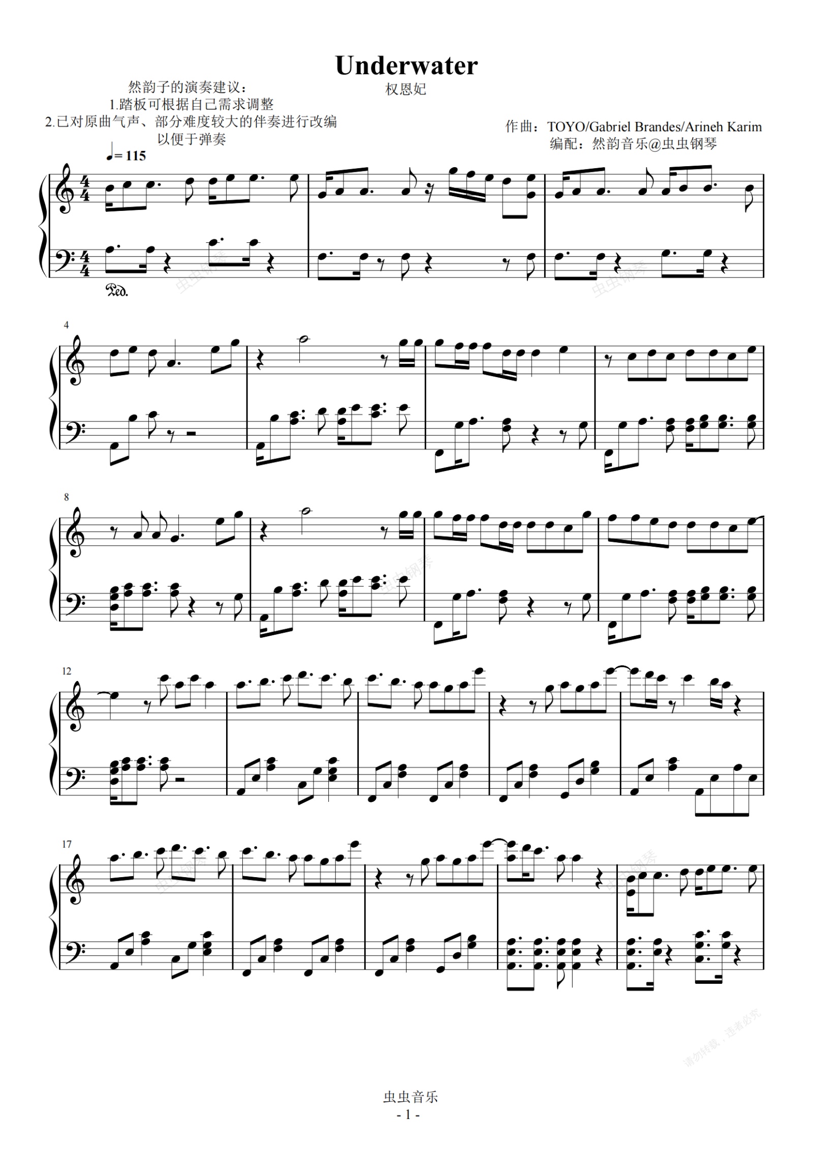 钢琴谱:【C调】Underwater-권은비 (权恩妃) 钢琴极限还原