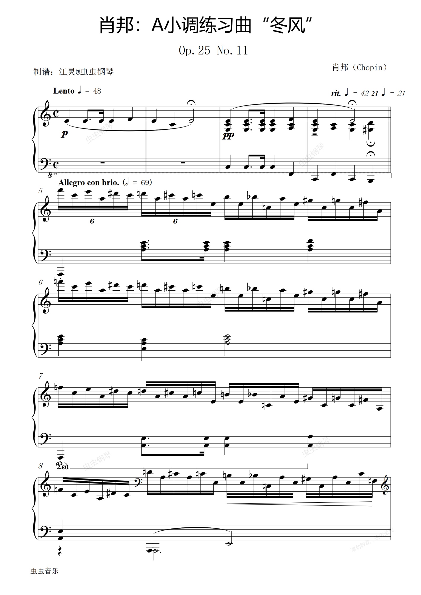 钢琴谱:肖邦:A小调练习曲“冬风” Op.25 No.11