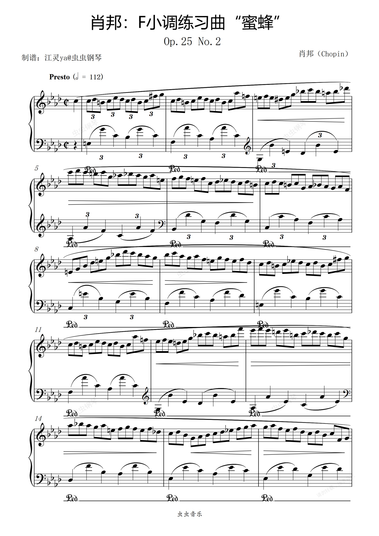 钢琴谱:肖邦:F小调练习曲“蜜蜂” Op.25 No.2