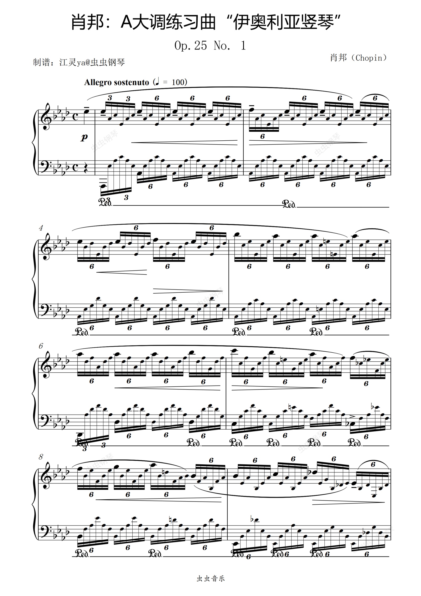 钢琴谱:肖邦:A大调练习曲“伊奥利亚竖琴”Op.25 No. 1