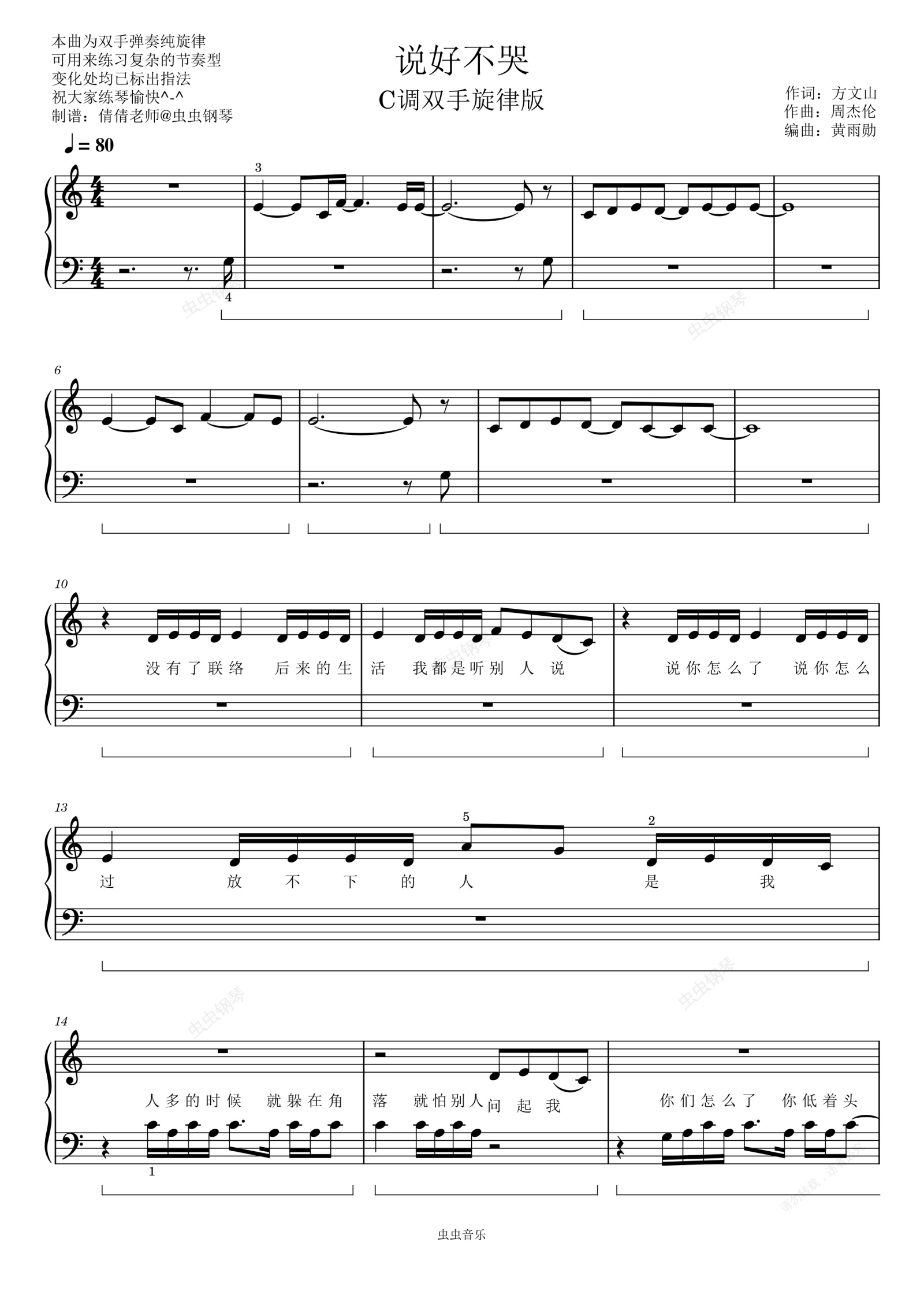钢琴谱:说好不哭-周杰伦-初学简易纯旋律C调