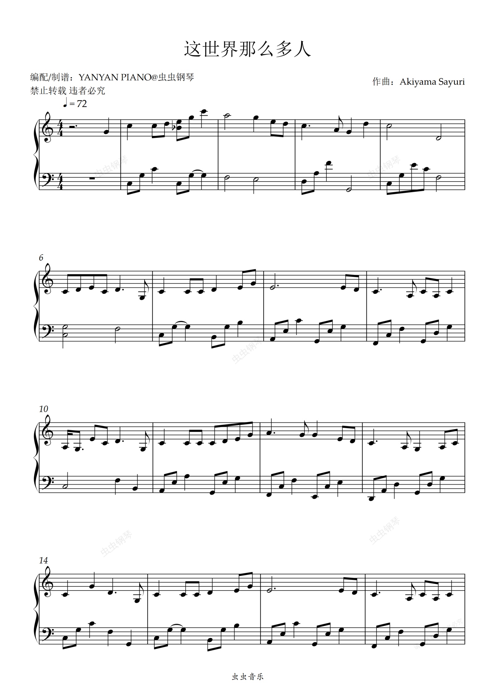 钢琴谱:好听易弹【这世界那么多人】莫文蔚
