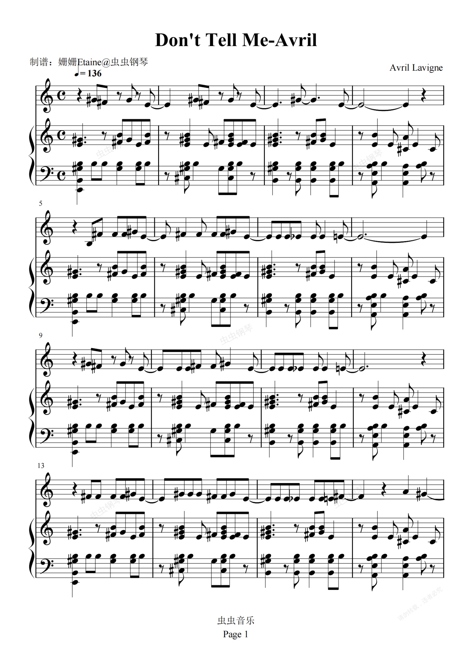 钢琴谱:Don't Tell Me-Avril 艾薇儿