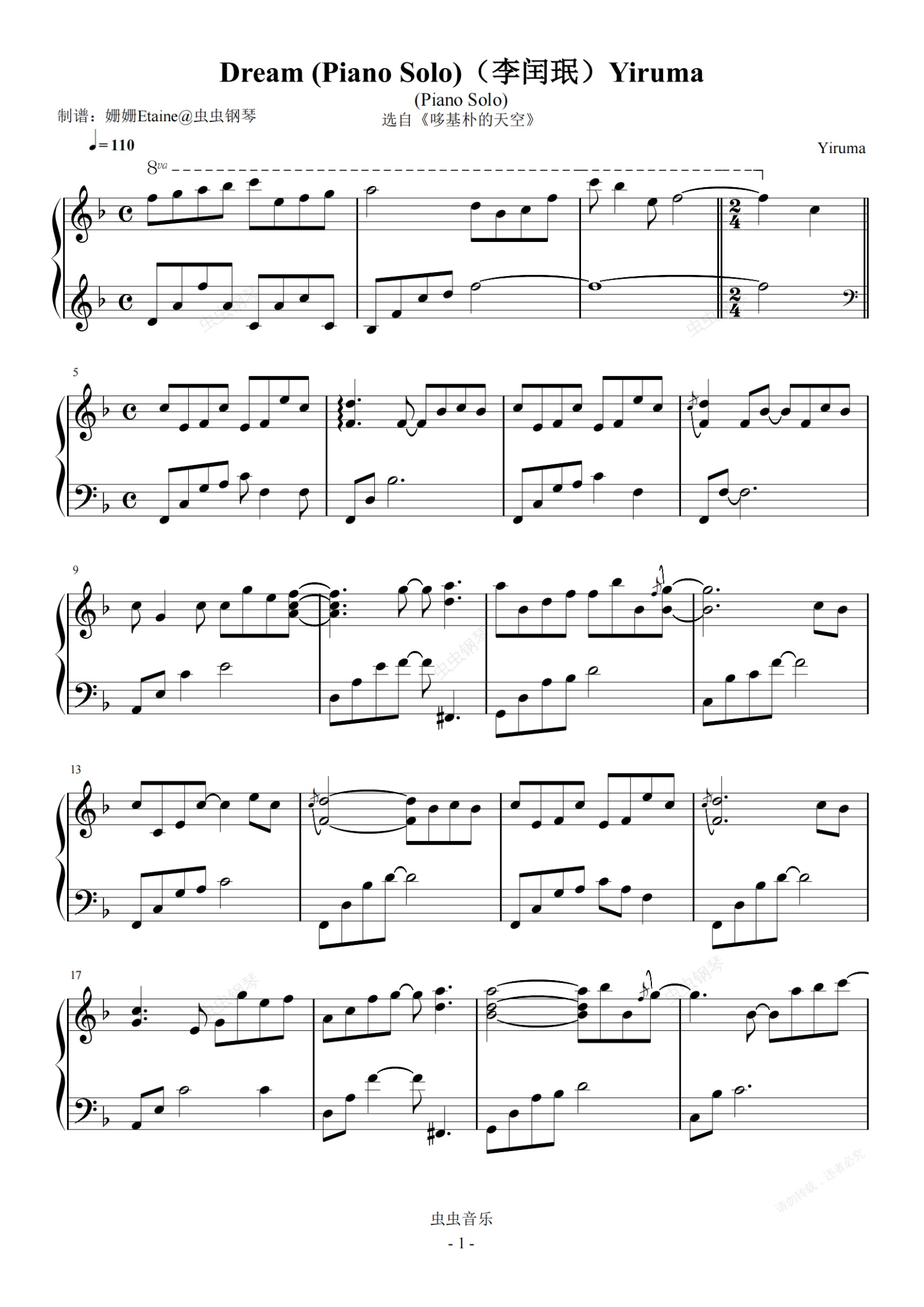 钢琴谱:Dream (Piano Solo)(李闰珉)Yiruma 钢琴谱