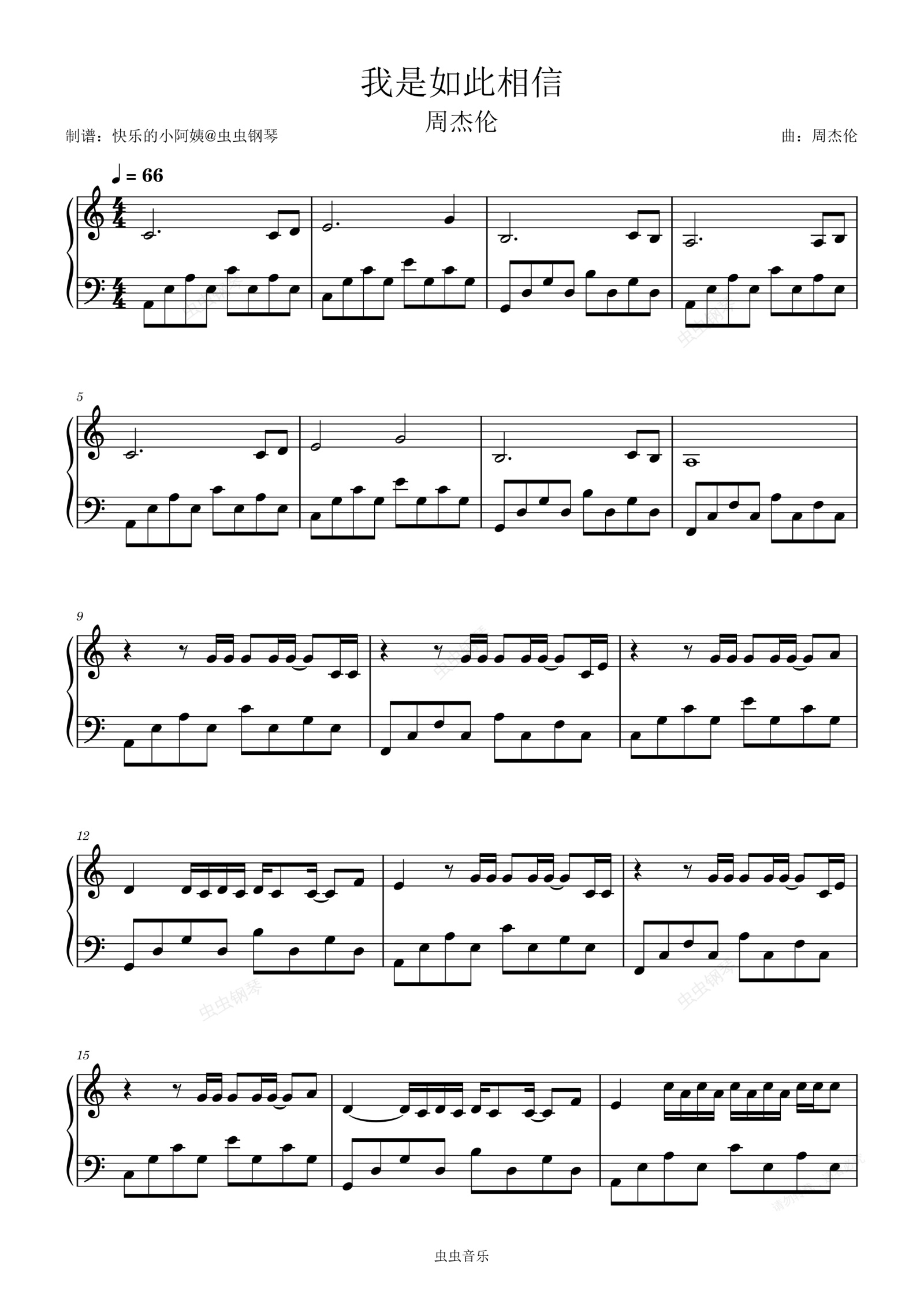 钢琴谱:我是如此相信-周杰伦-C调简单