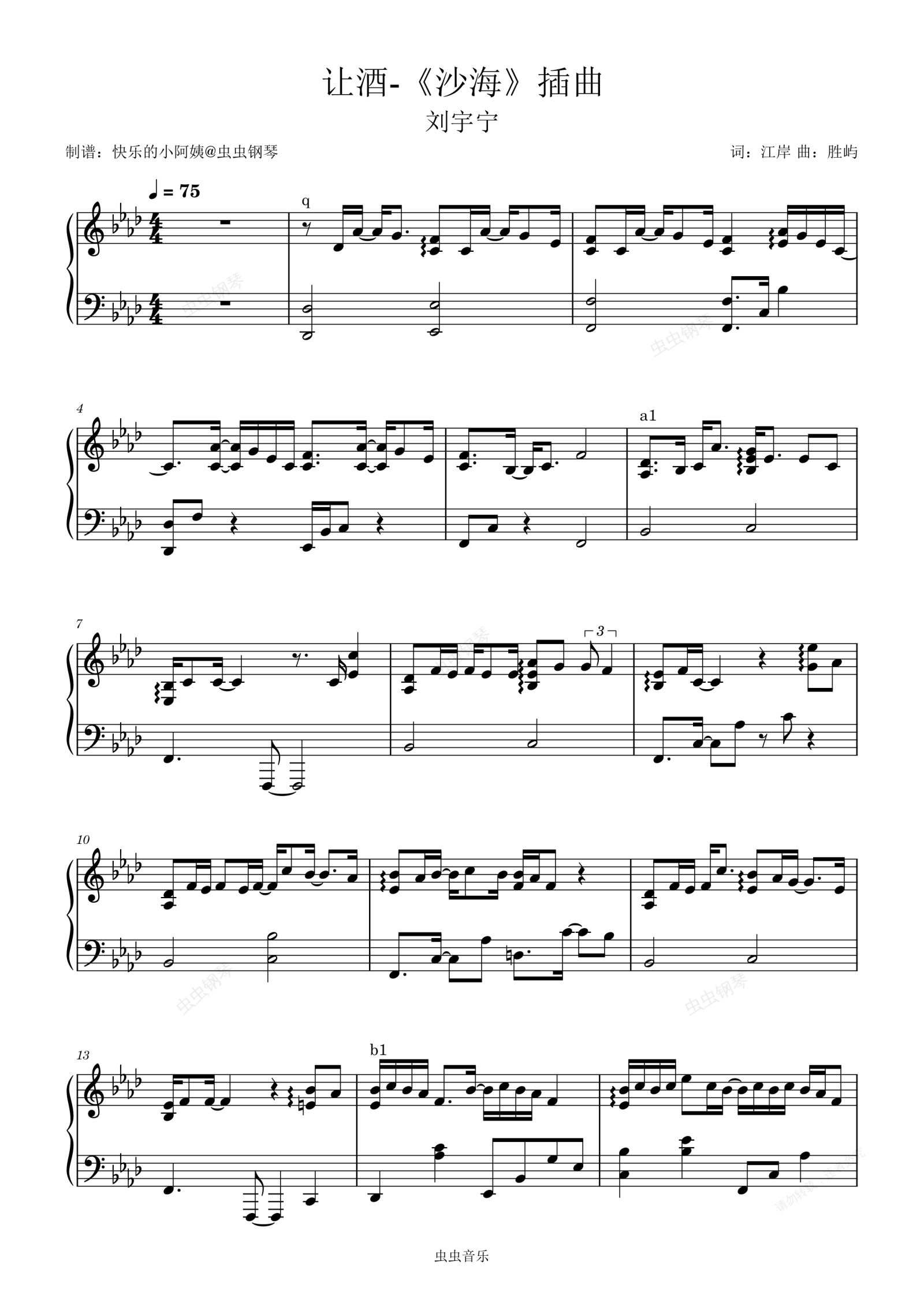 钢琴谱:让酒-《沙海》插曲 - 刘宇宁