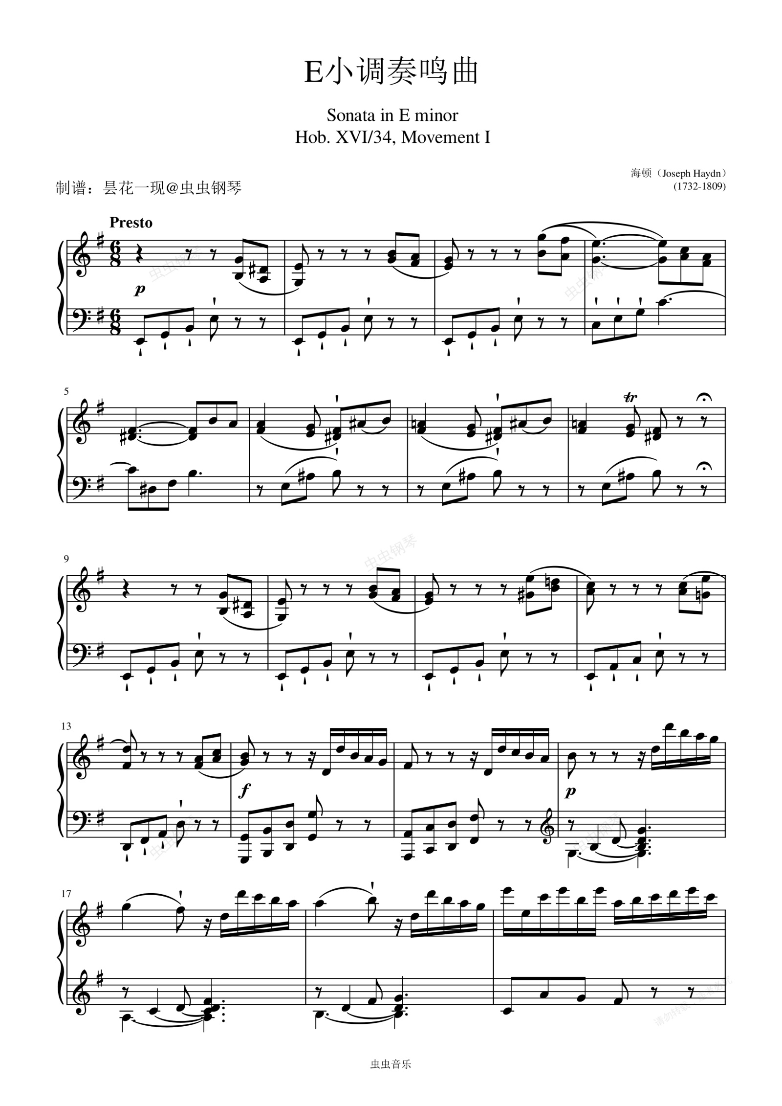 钢琴谱:E小调奏鸣曲 Hob. XVI/34, Movement I