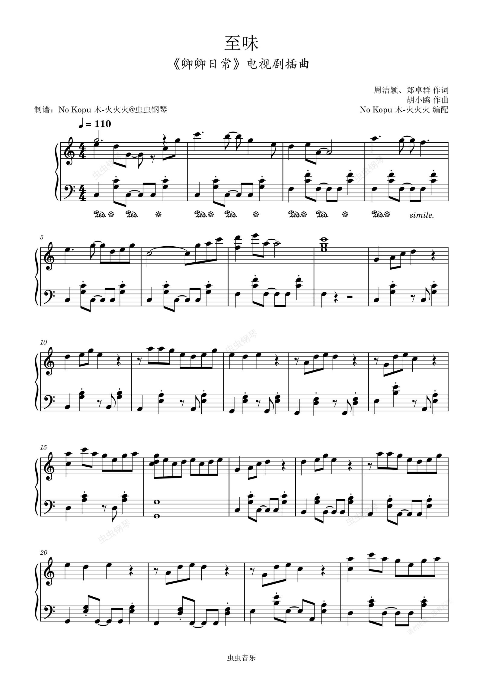 钢琴谱:精编《至味》C调《卿卿日常》插曲