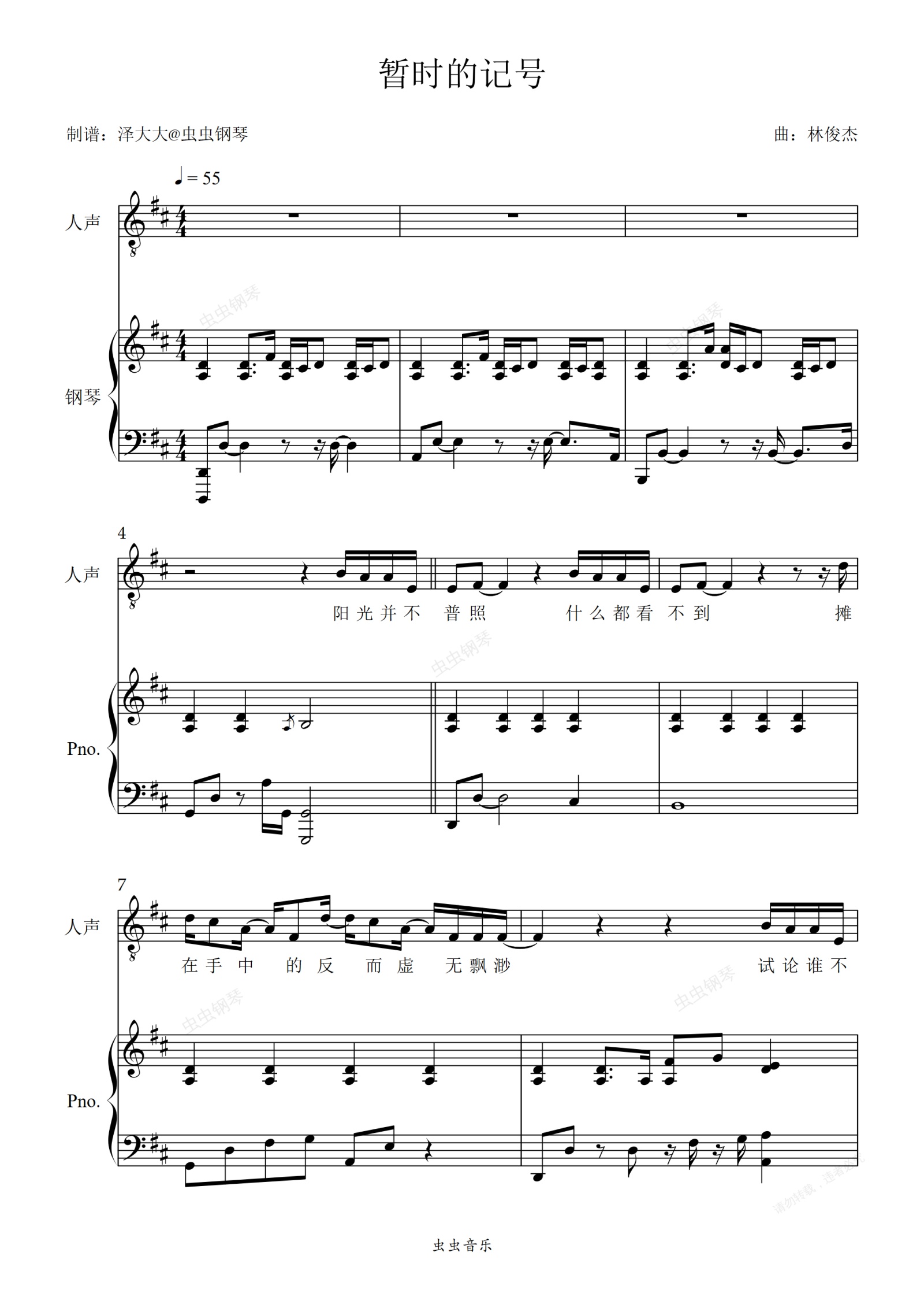 钢琴谱:暂时的记号【原版弹唱附词】泽大大 林俊杰