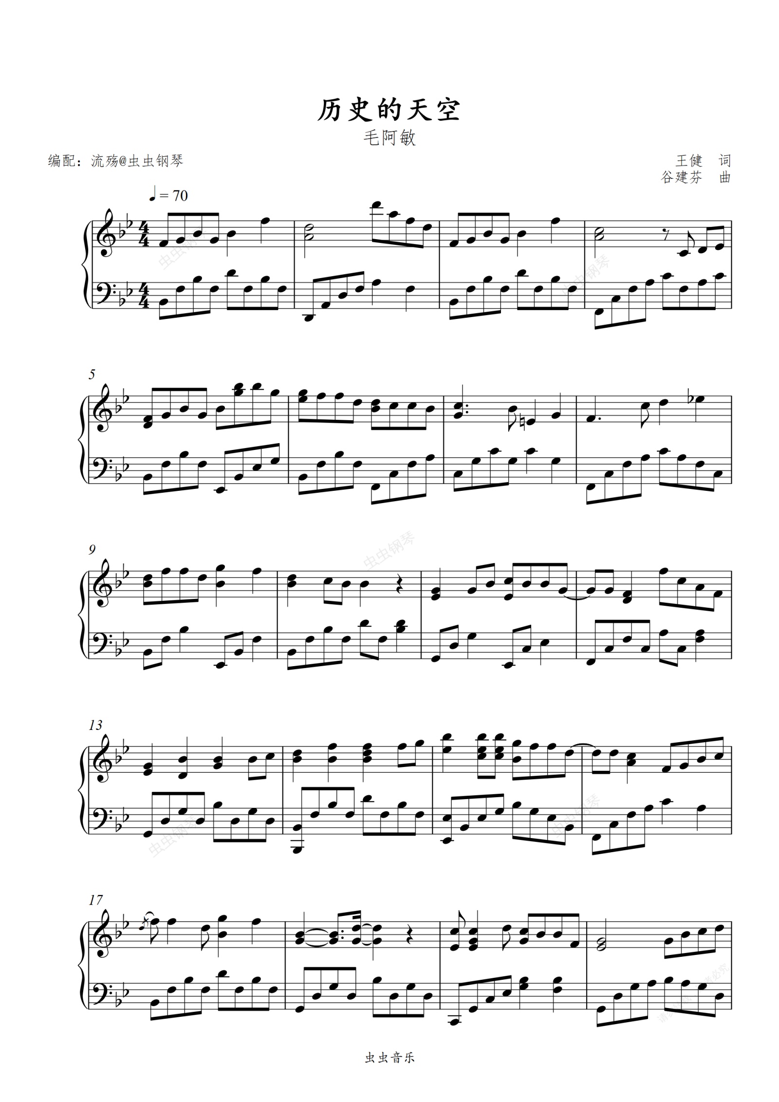 您的位置: 首页 > 钢琴谱库 > 历史的天空钢琴谱-毛阿敏