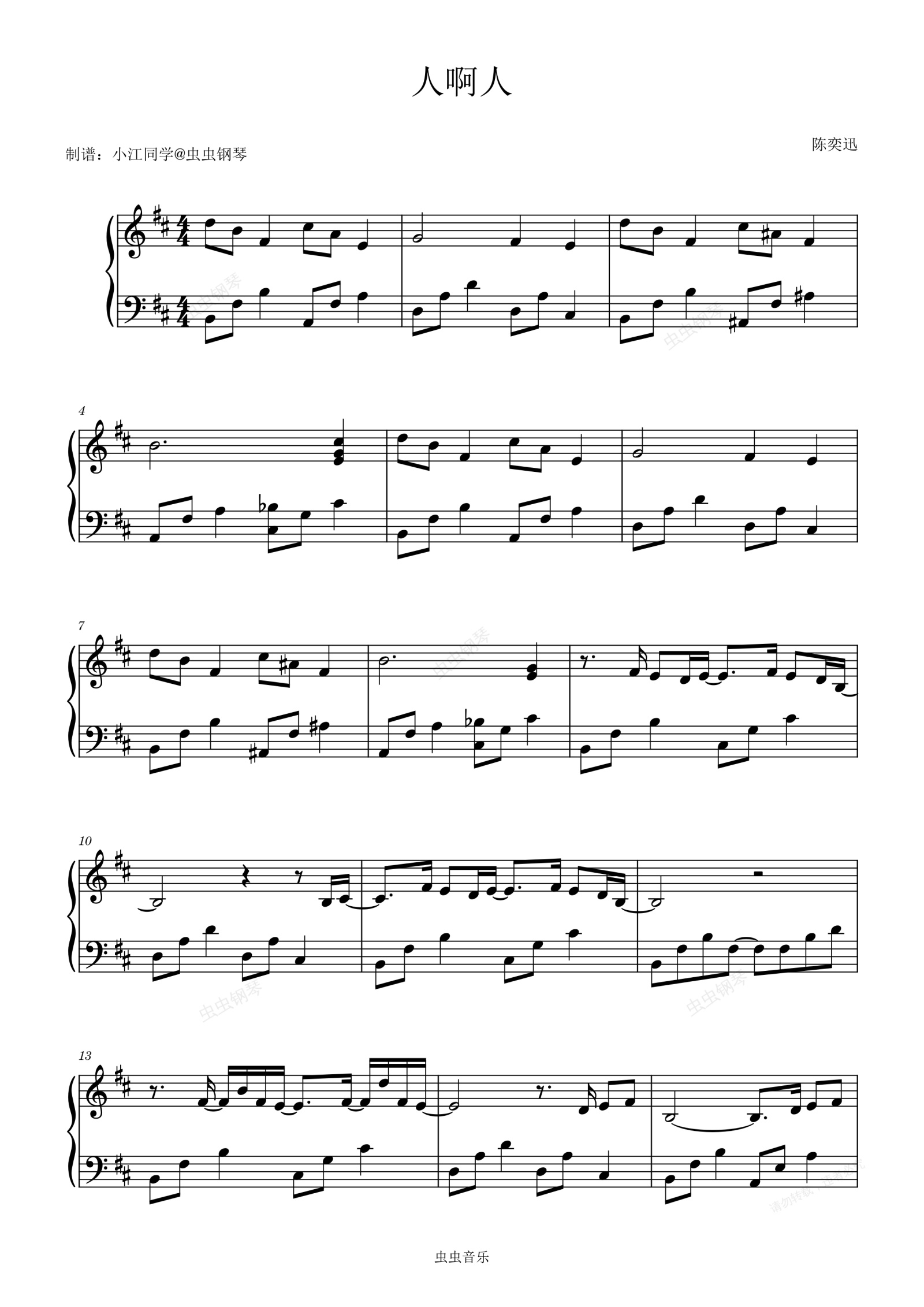 钢琴谱:人啊人 陈奕迅