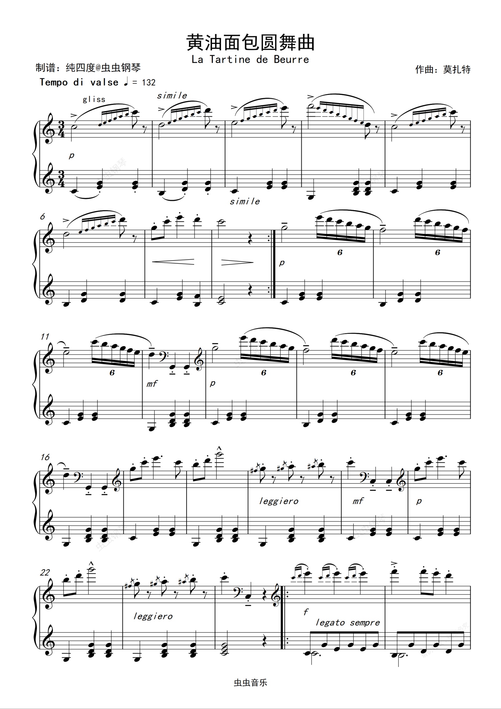 钢琴谱:莫扎特 黄油面包圆舞曲(La Tartine de Beurre)