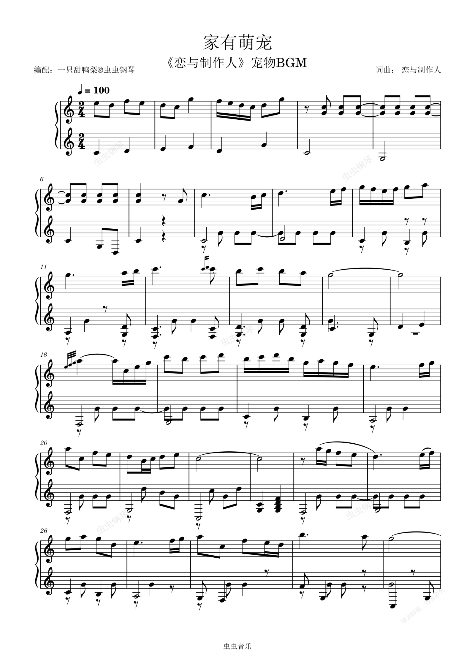 钢琴谱:《恋与制作人》家有萌宠BGM 钢琴独奏版