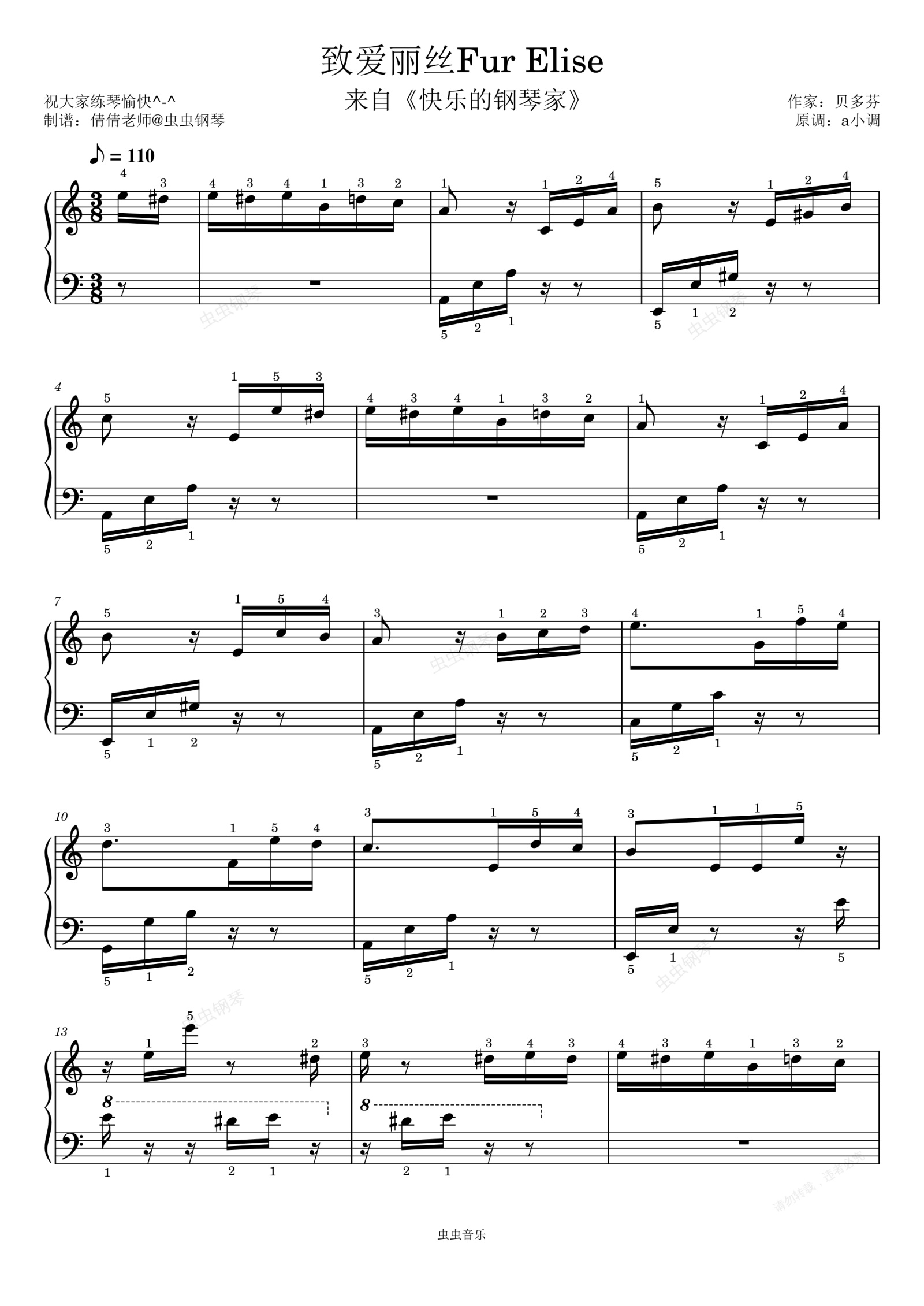 钢琴谱:献给爱丽丝-贝多芬-C调简易片段