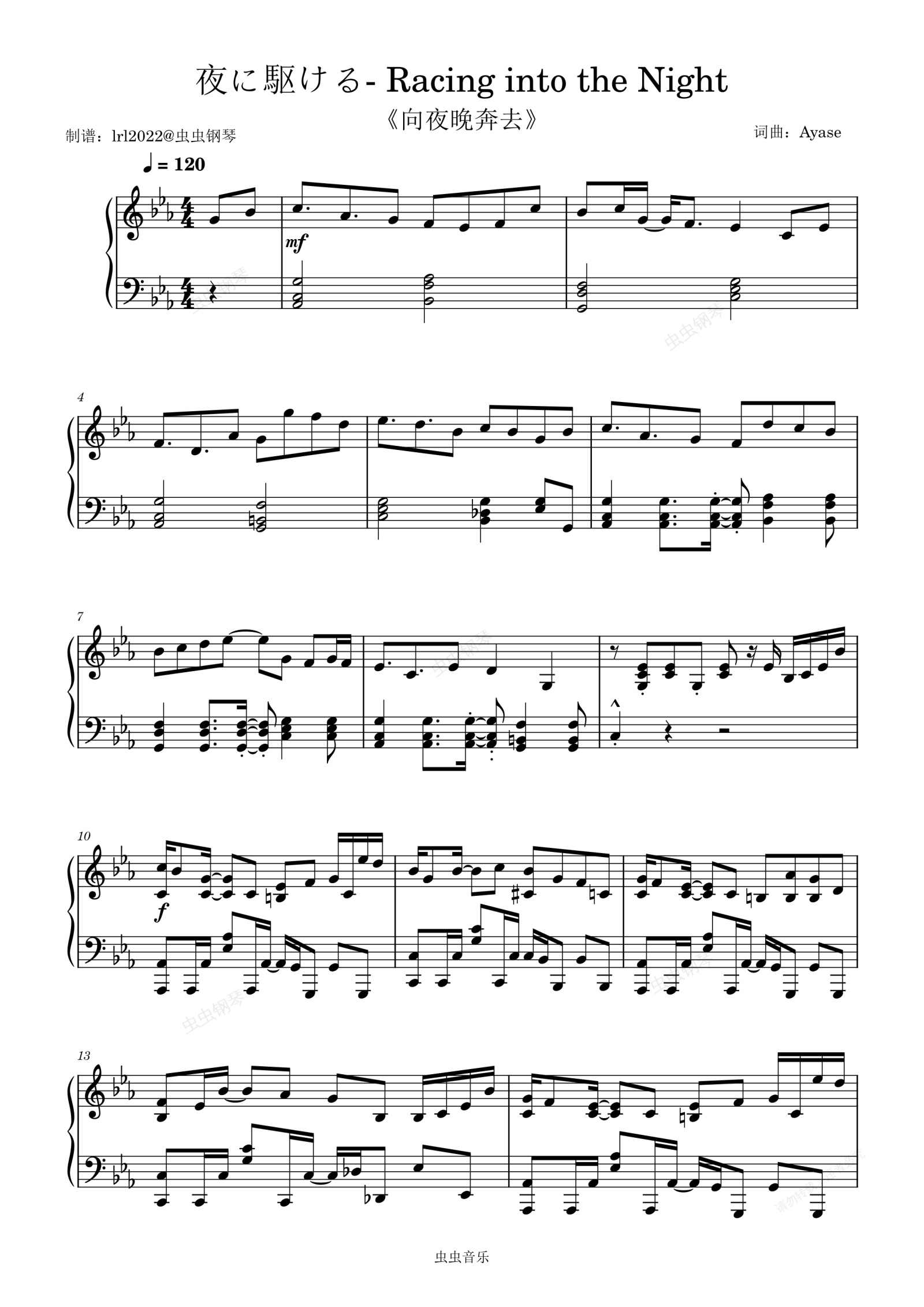 钢琴谱:向夜晚奔去 (夜に駆ける) -Racing into the Night-YOASOBI
