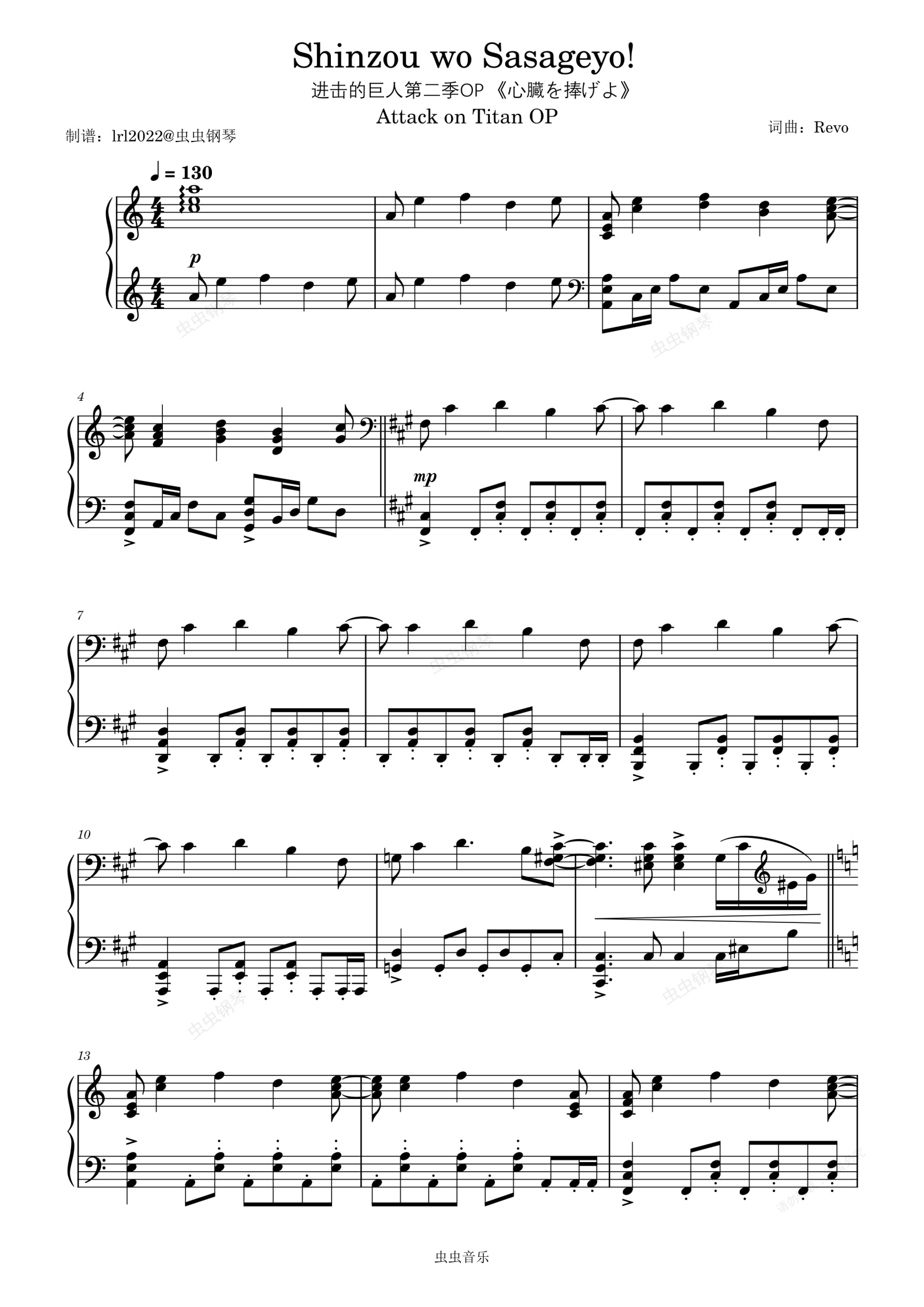 钢琴谱:Shinzou wo Sasageyo!-进击的巨人第二季OP-《心臓を捧げよ!》-把心脏献给你