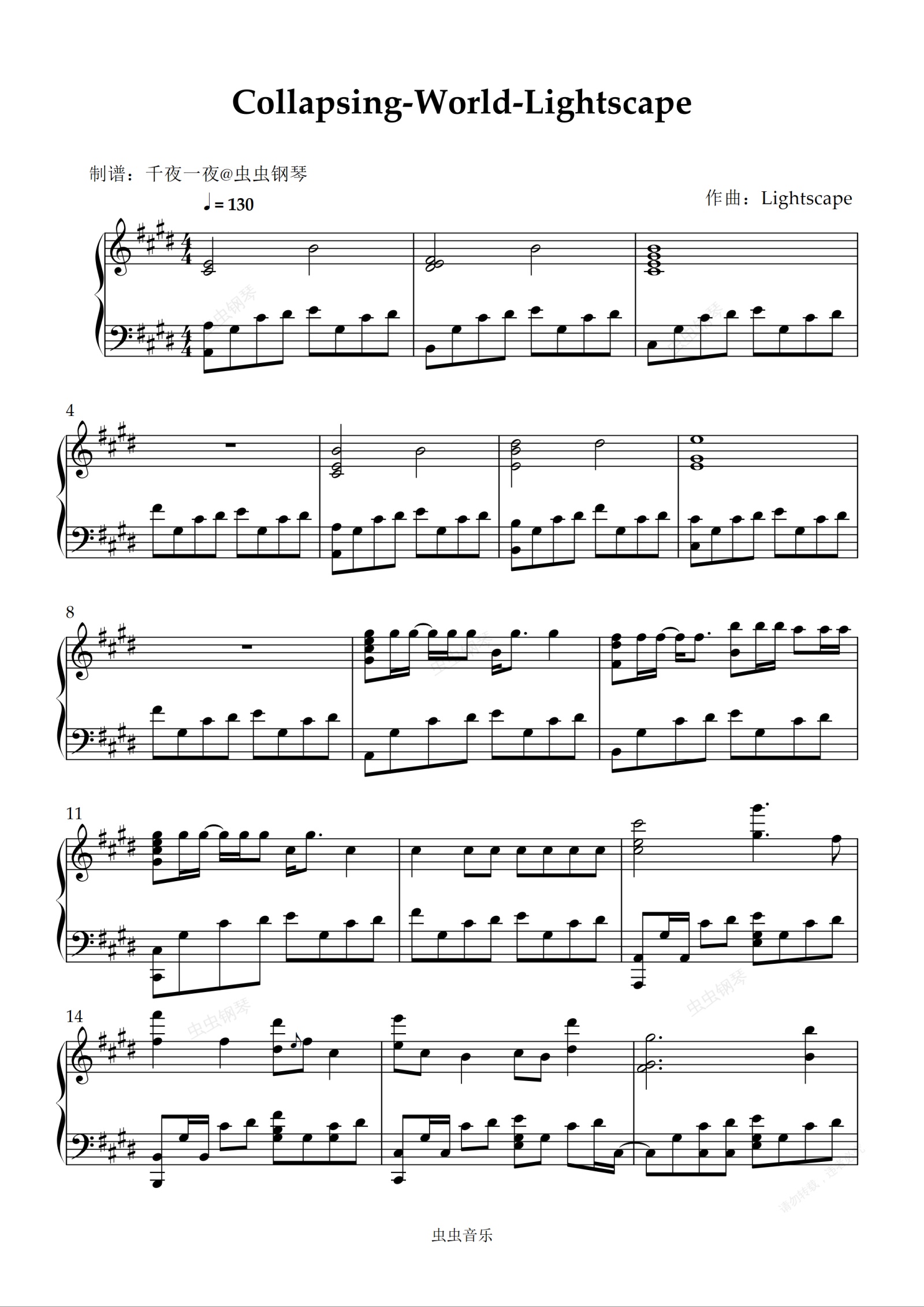 钢琴谱:钢琴 | 高燃神曲《Collapsing World》