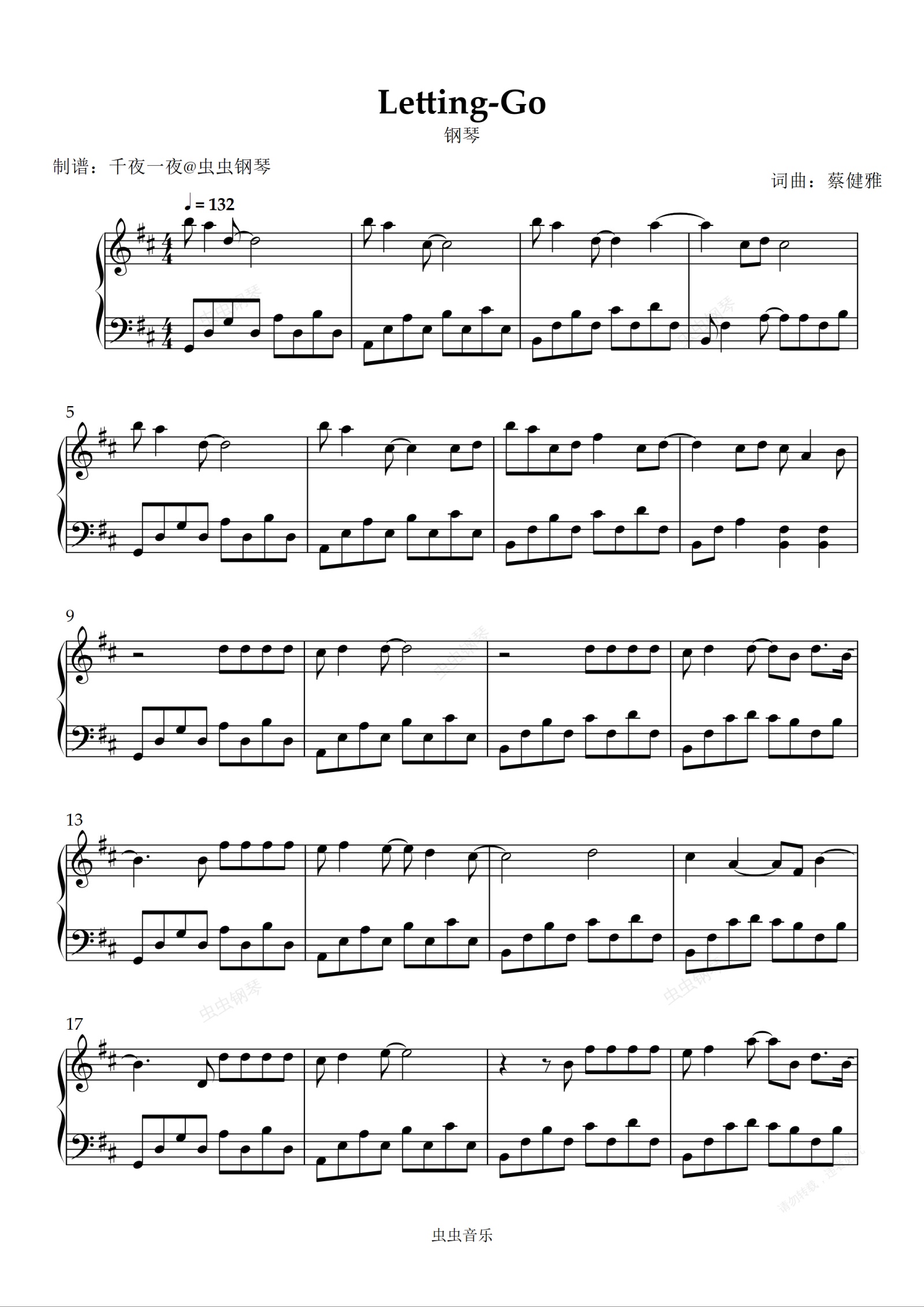钢琴谱:前奏一开始就emo了!蔡健雅《Letting Go》