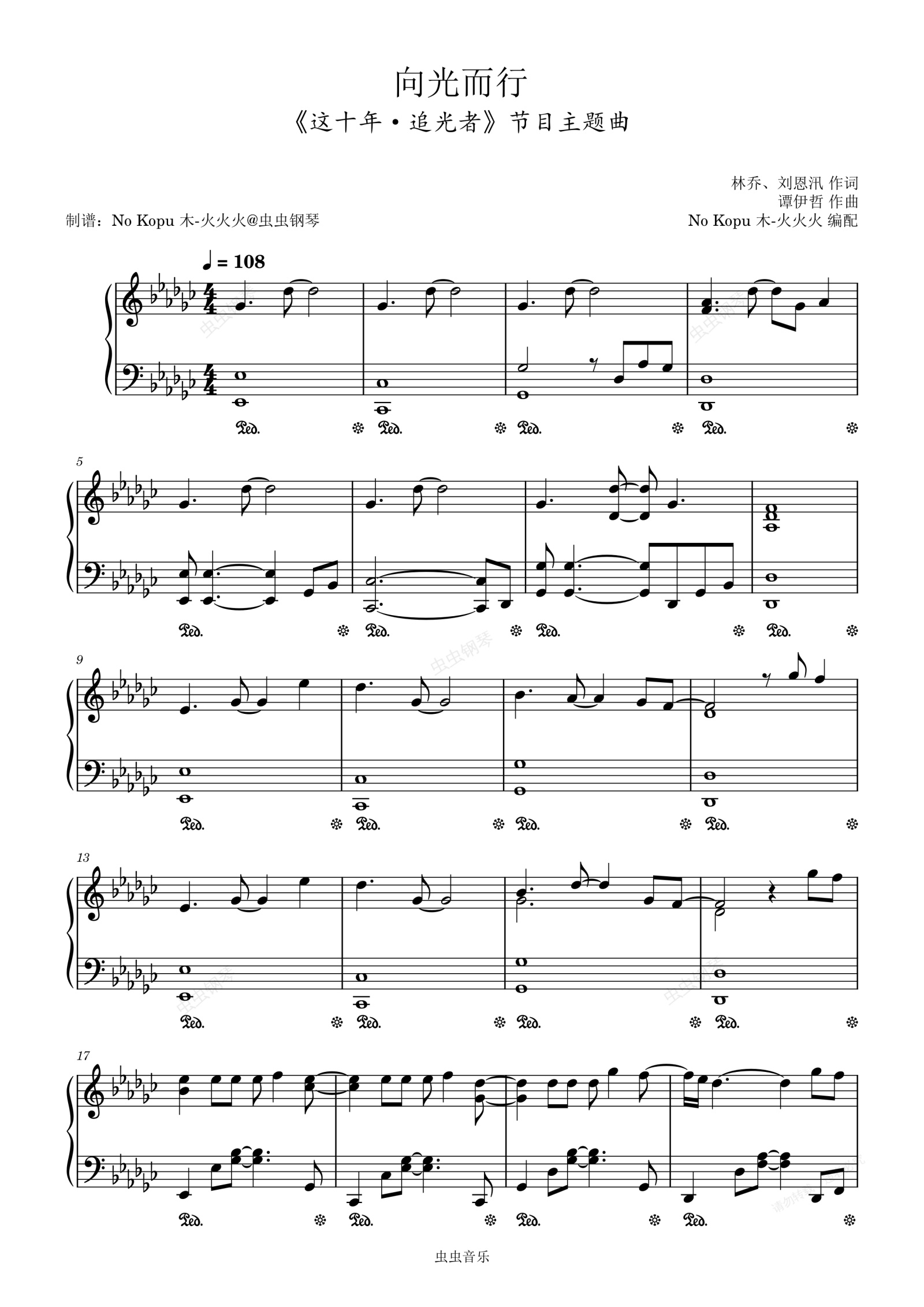 钢琴谱:周深《向光而行 》#F调(《这十年·追光者》主题曲)