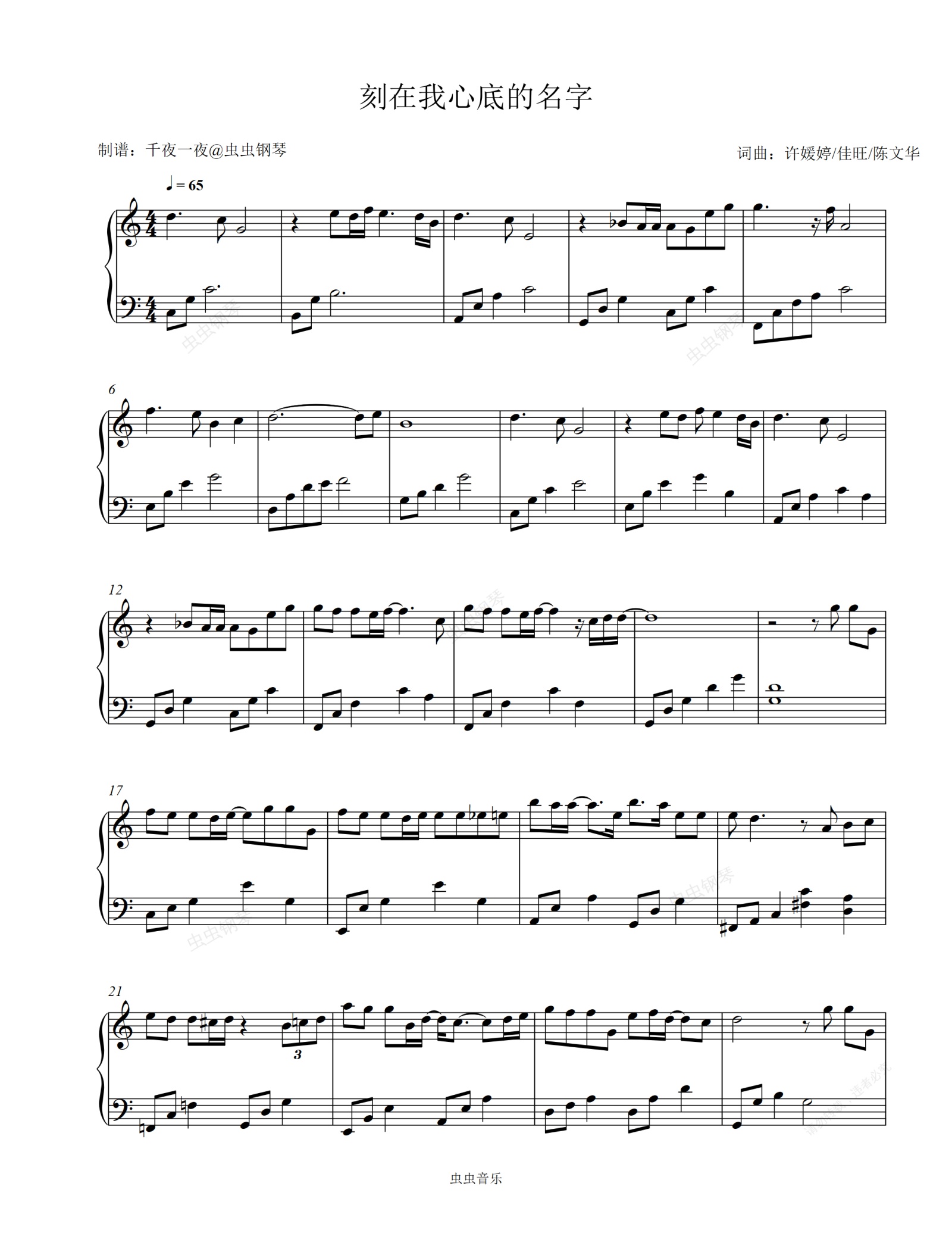钢琴谱:【钢琴】《刻在我心底的名字》“如果有下次,我会再爱一次”