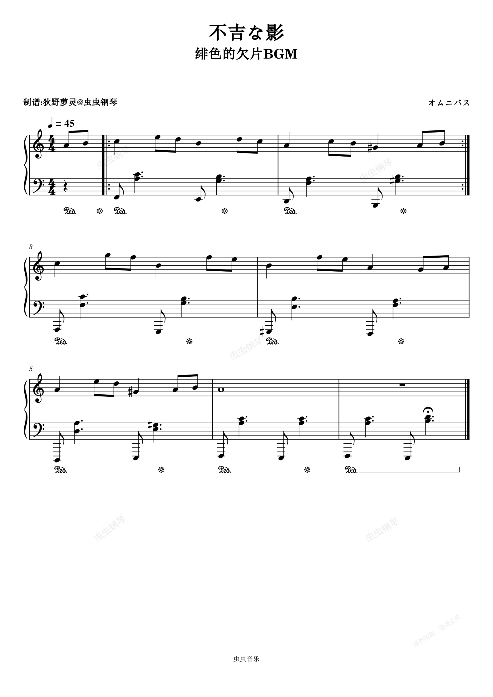 钢琴谱:不吉な影