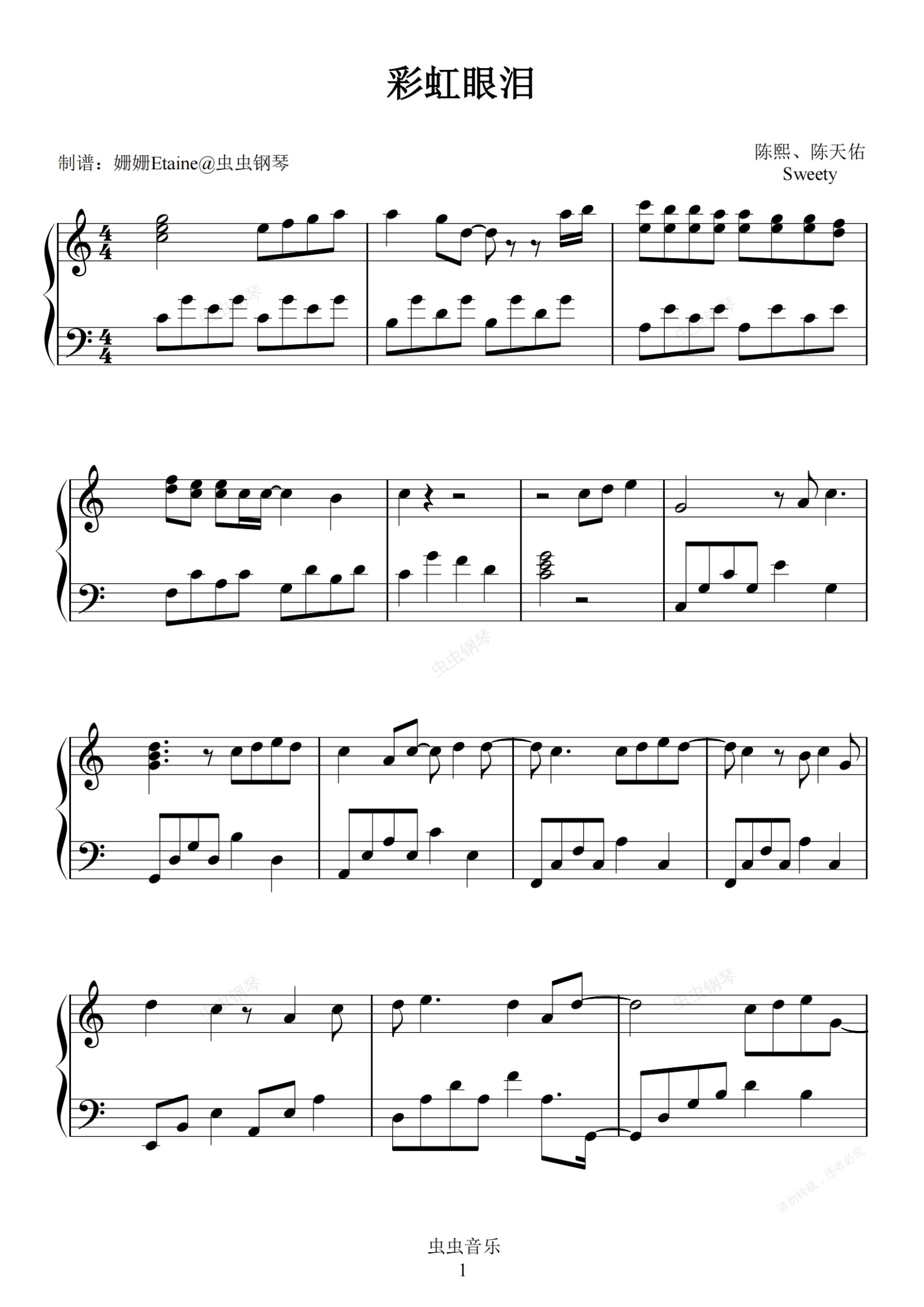 钢琴谱:Sweety《彩虹眼泪》钢琴谱