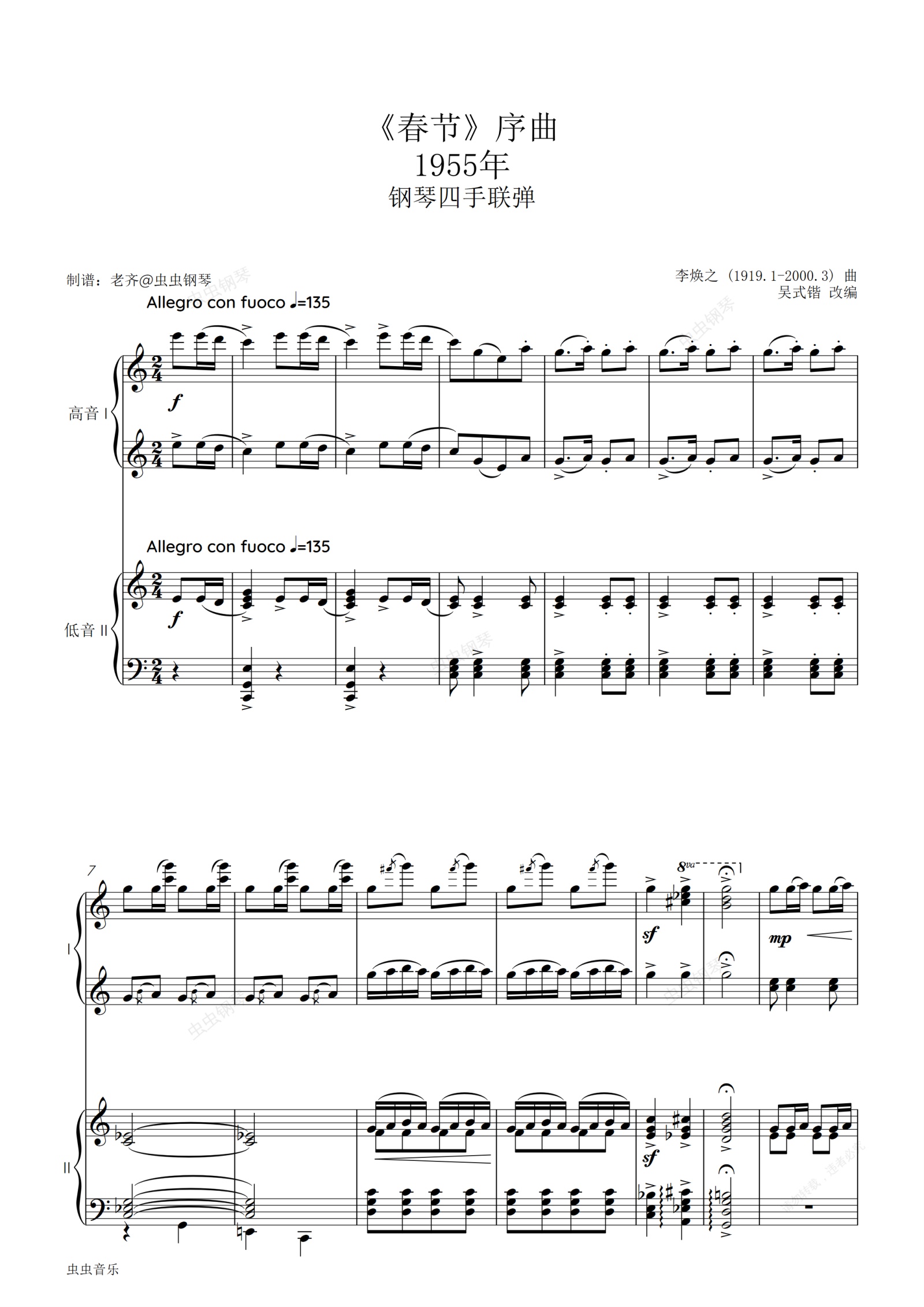 钢琴谱:【四手联弹】春节序曲(1956)