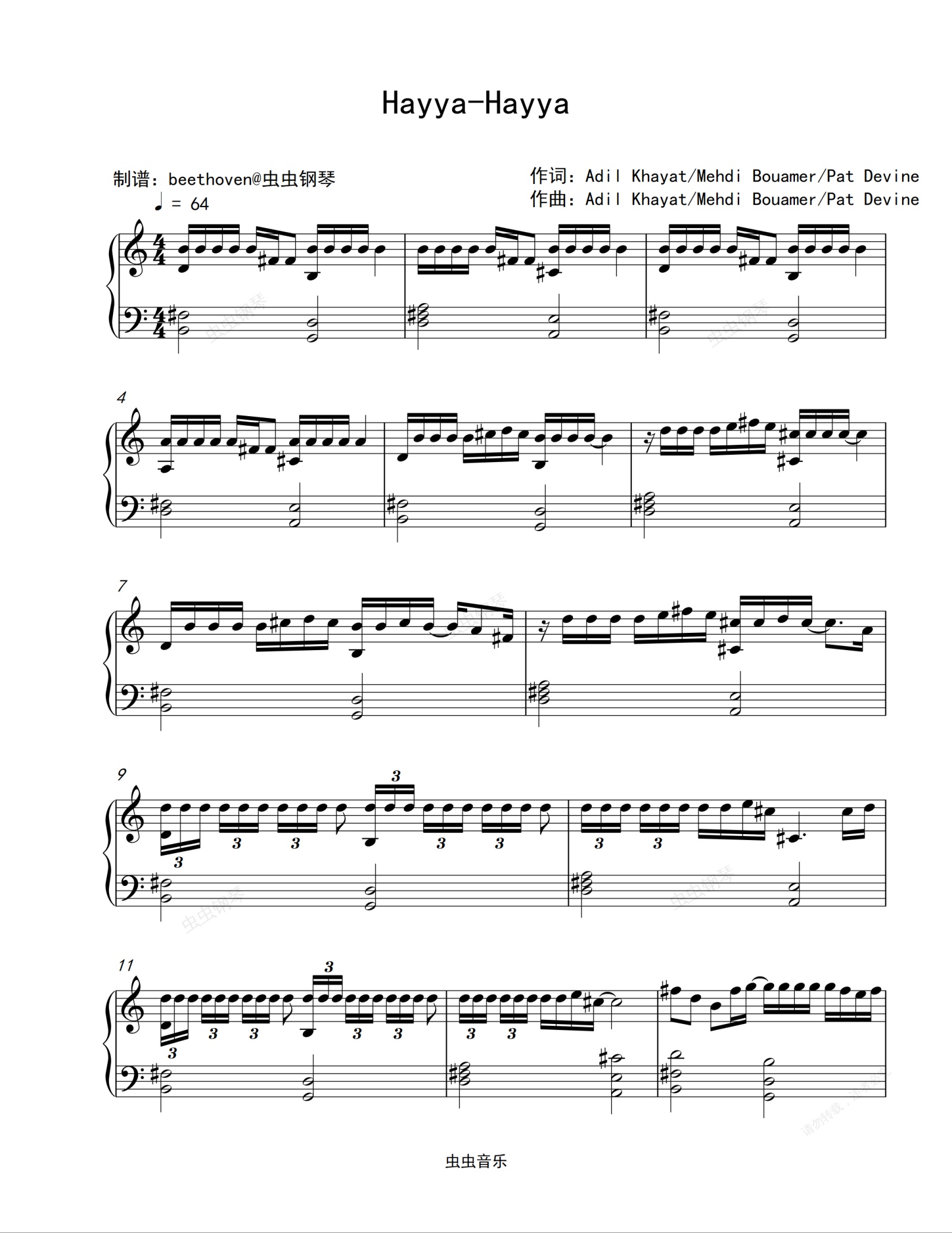 钢琴谱:Hayya Hayya -卡塔尔世界杯主题曲