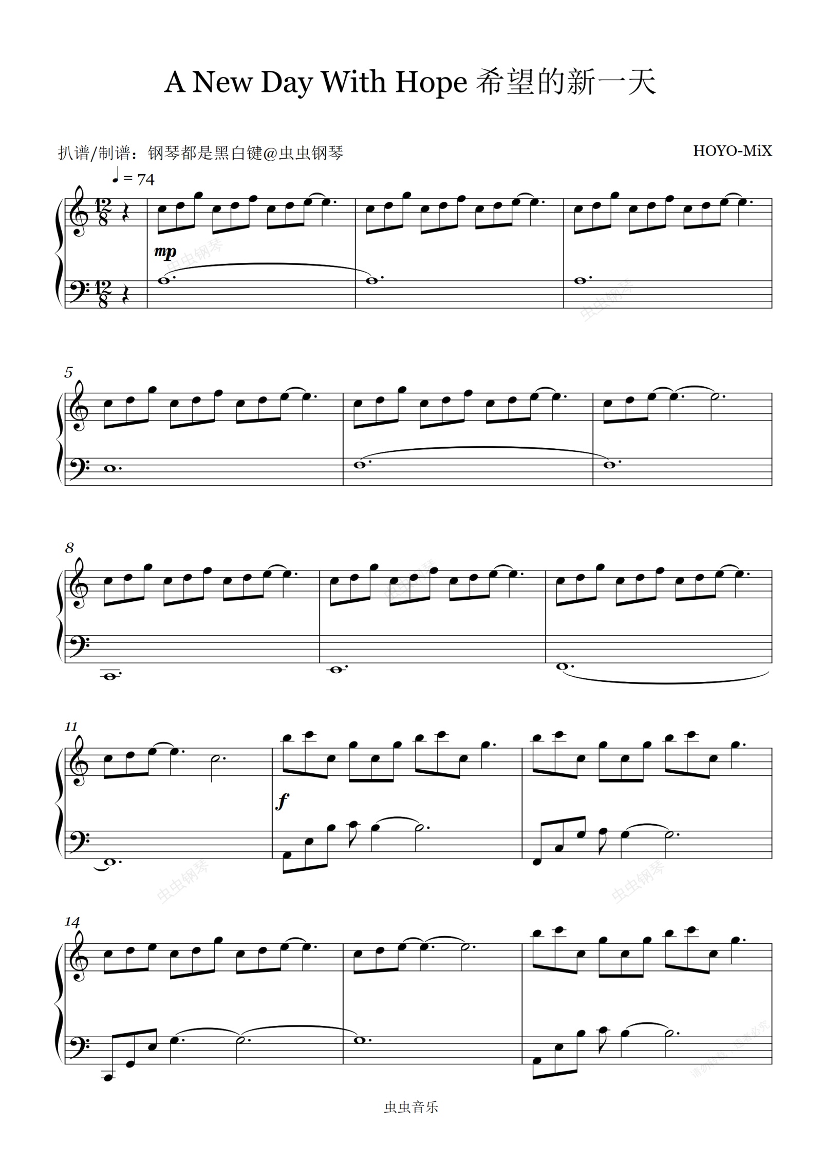 钢琴谱:【原神】A New Day With Hope 希望的新一天