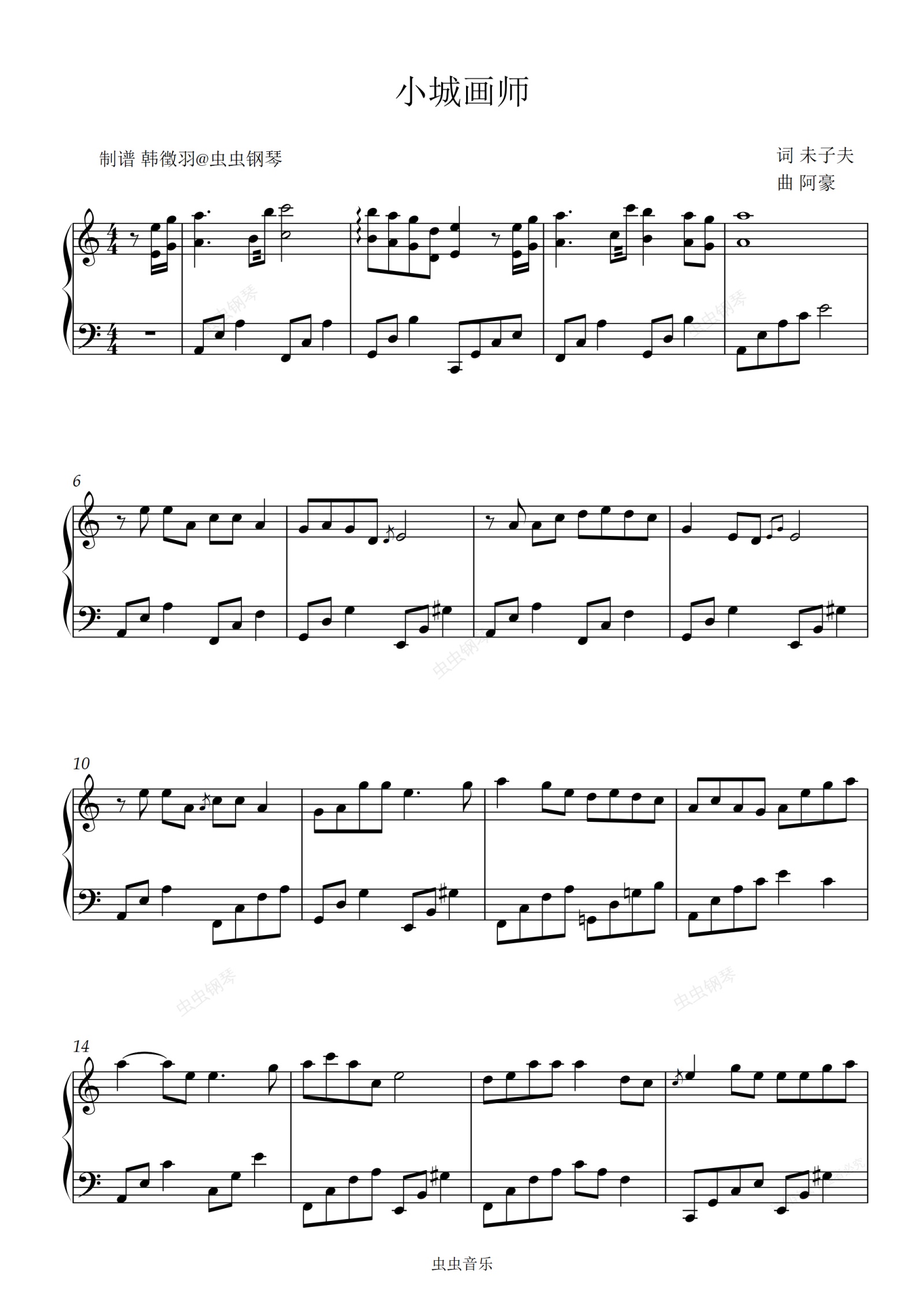 钢琴谱:小城画师 李小贝 C调 好听易弹