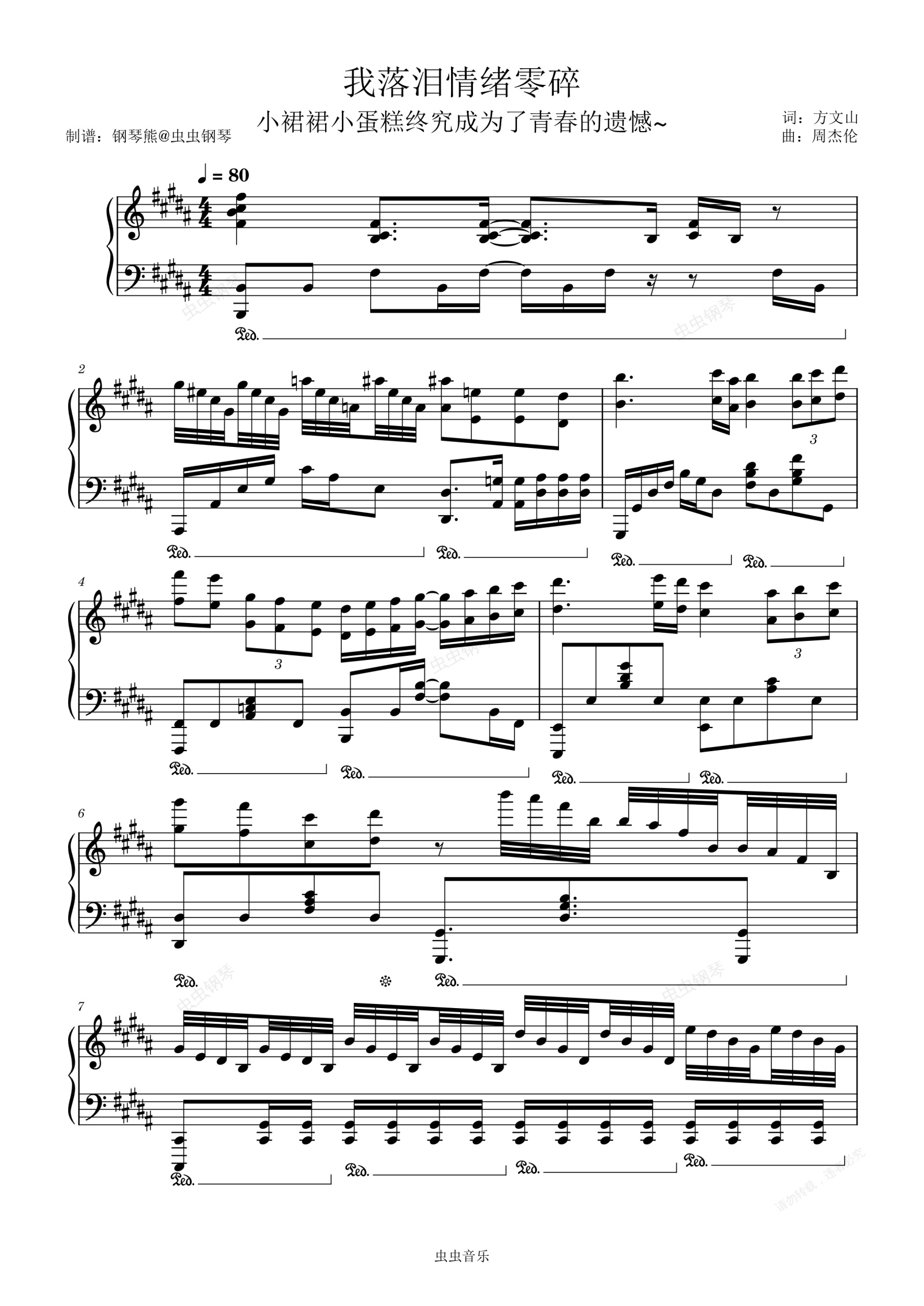 钢琴谱:《我落泪情绪零碎》极致还原版~