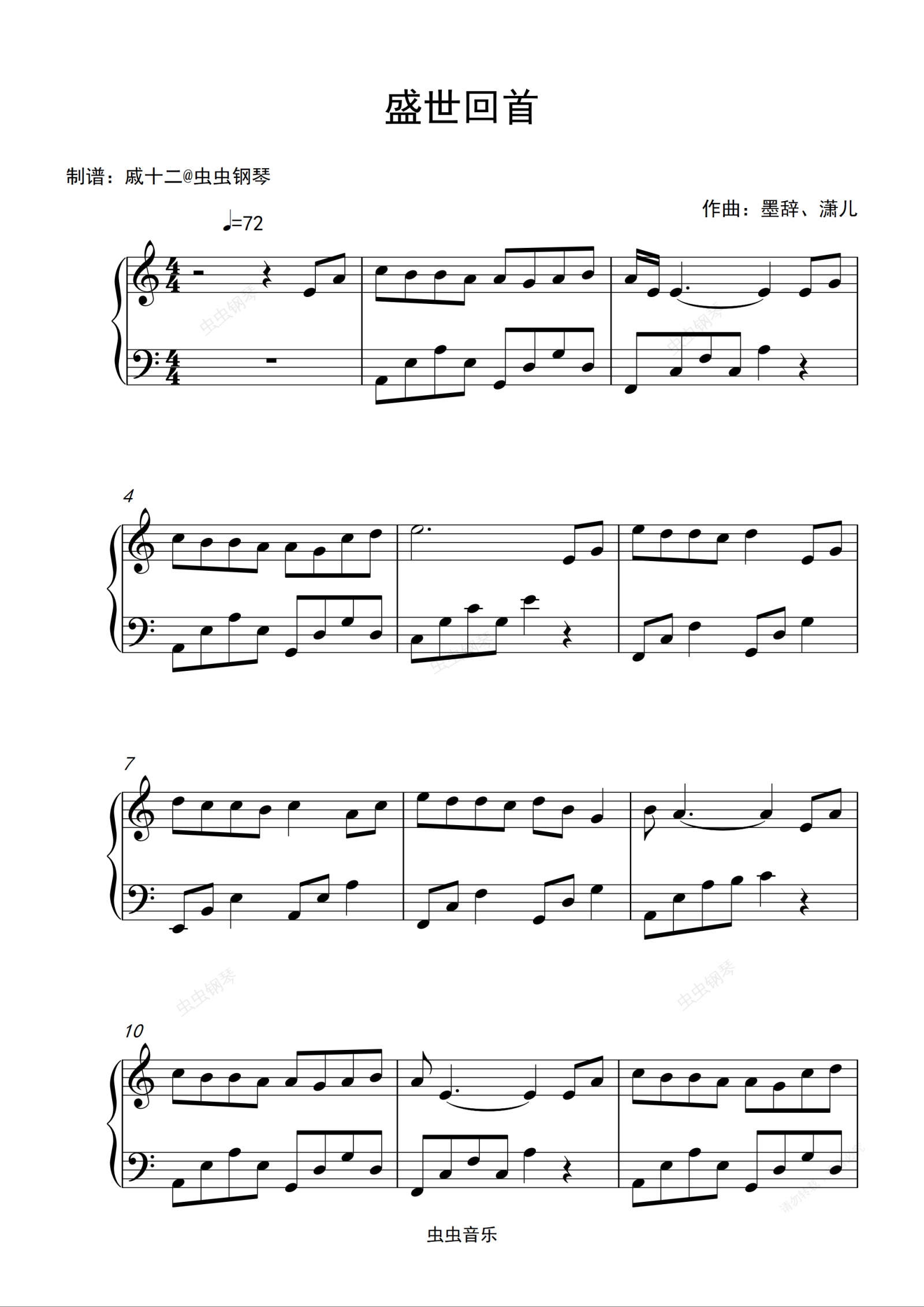钢琴谱:盛世回首-C调简单版