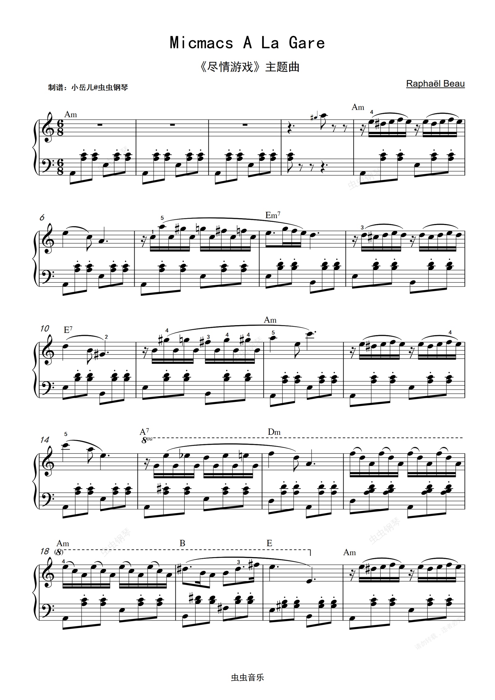 钢琴谱:Micmacs A La Gare《尽情游戏》主题曲
