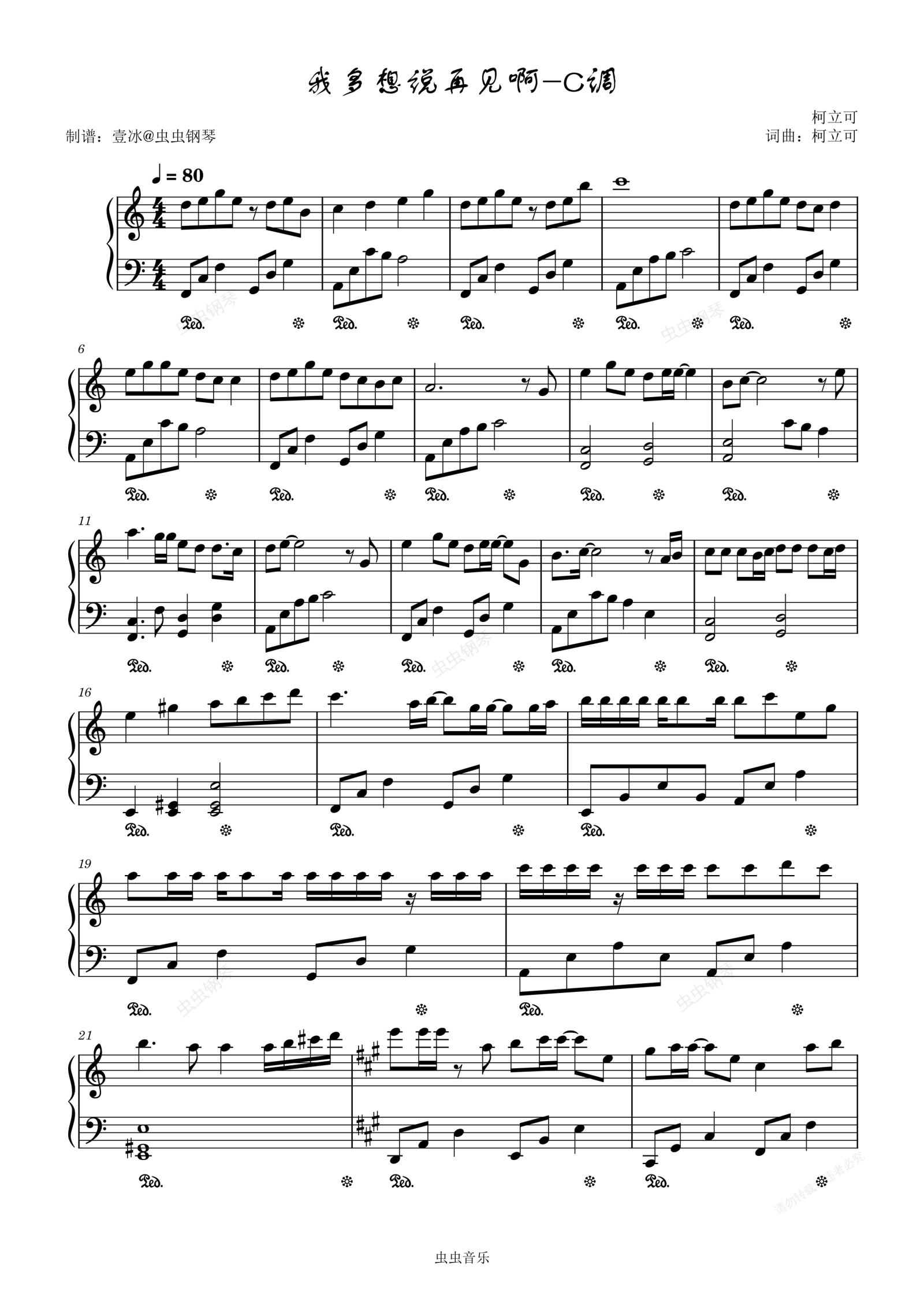 钢琴谱:我多想说再见啊//柯立可-C调