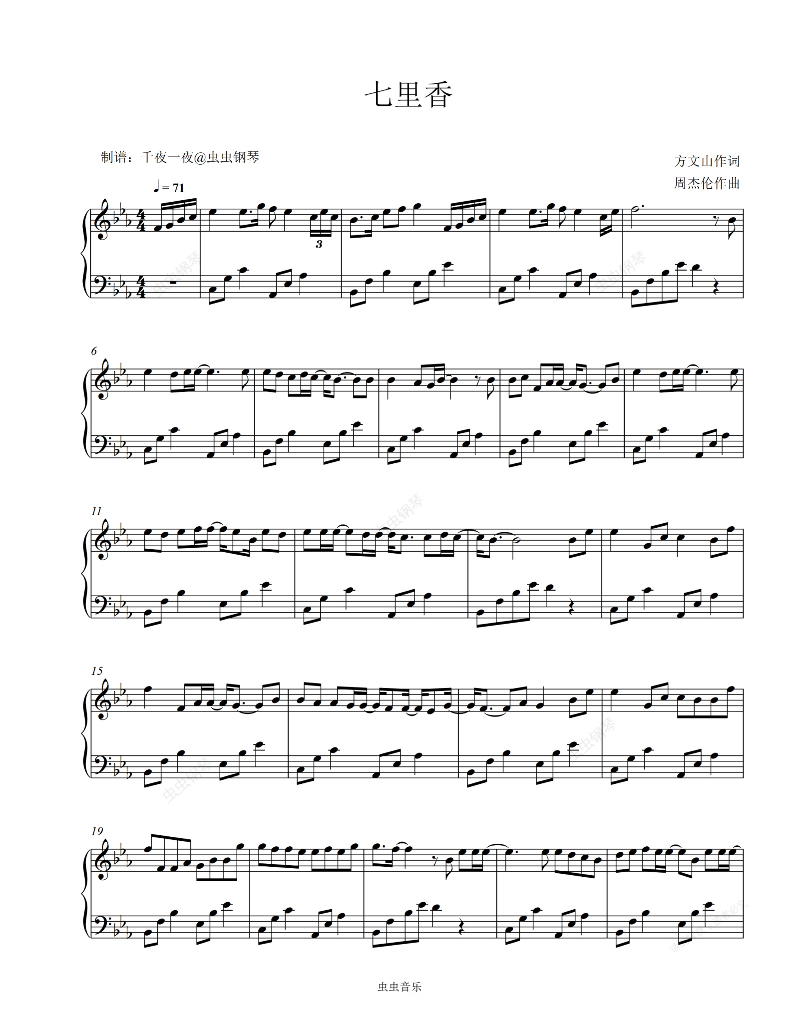 钢琴谱:周杰伦封神之作!【七里香】钢琴版极限还原!