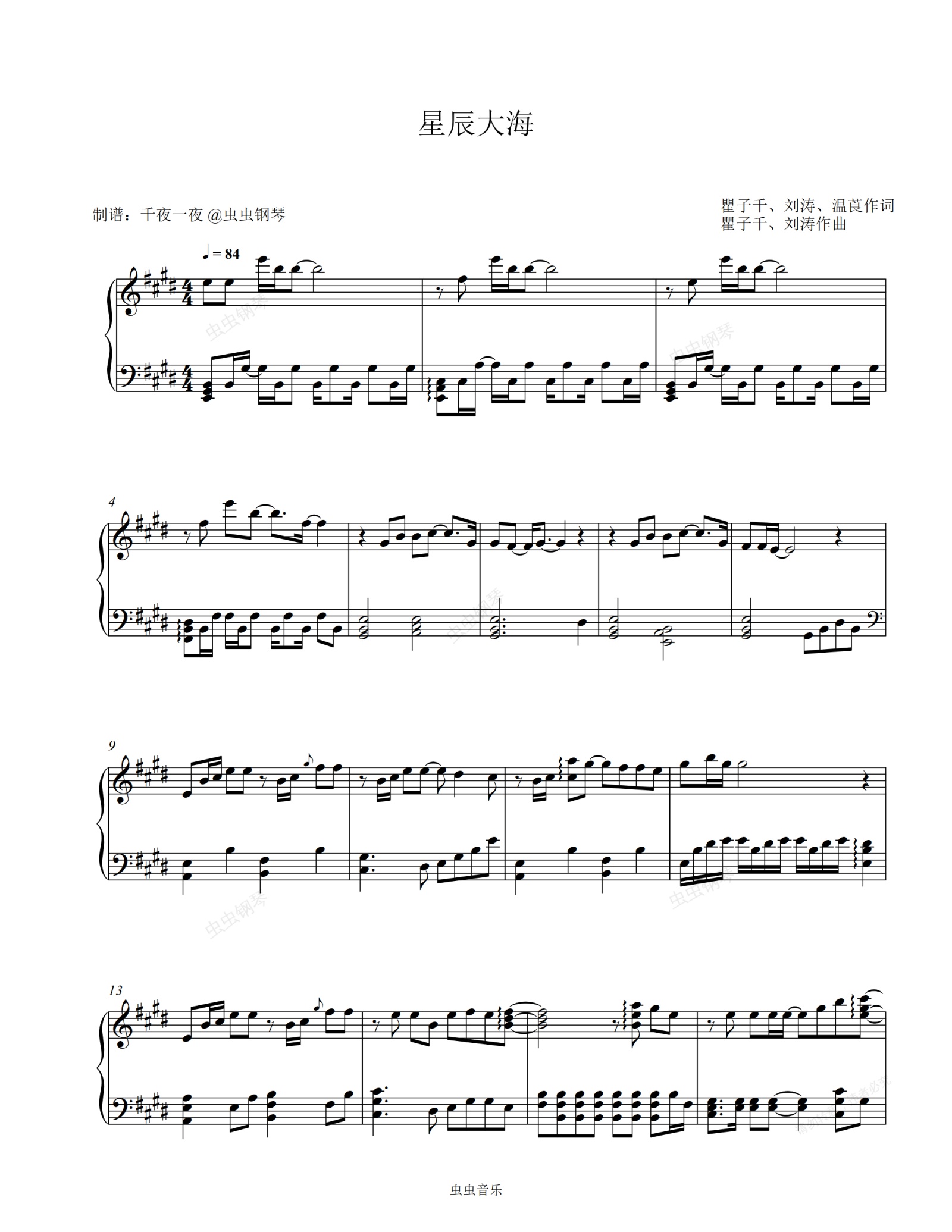 钢琴谱:【钢琴】《星辰大海》原调完整版